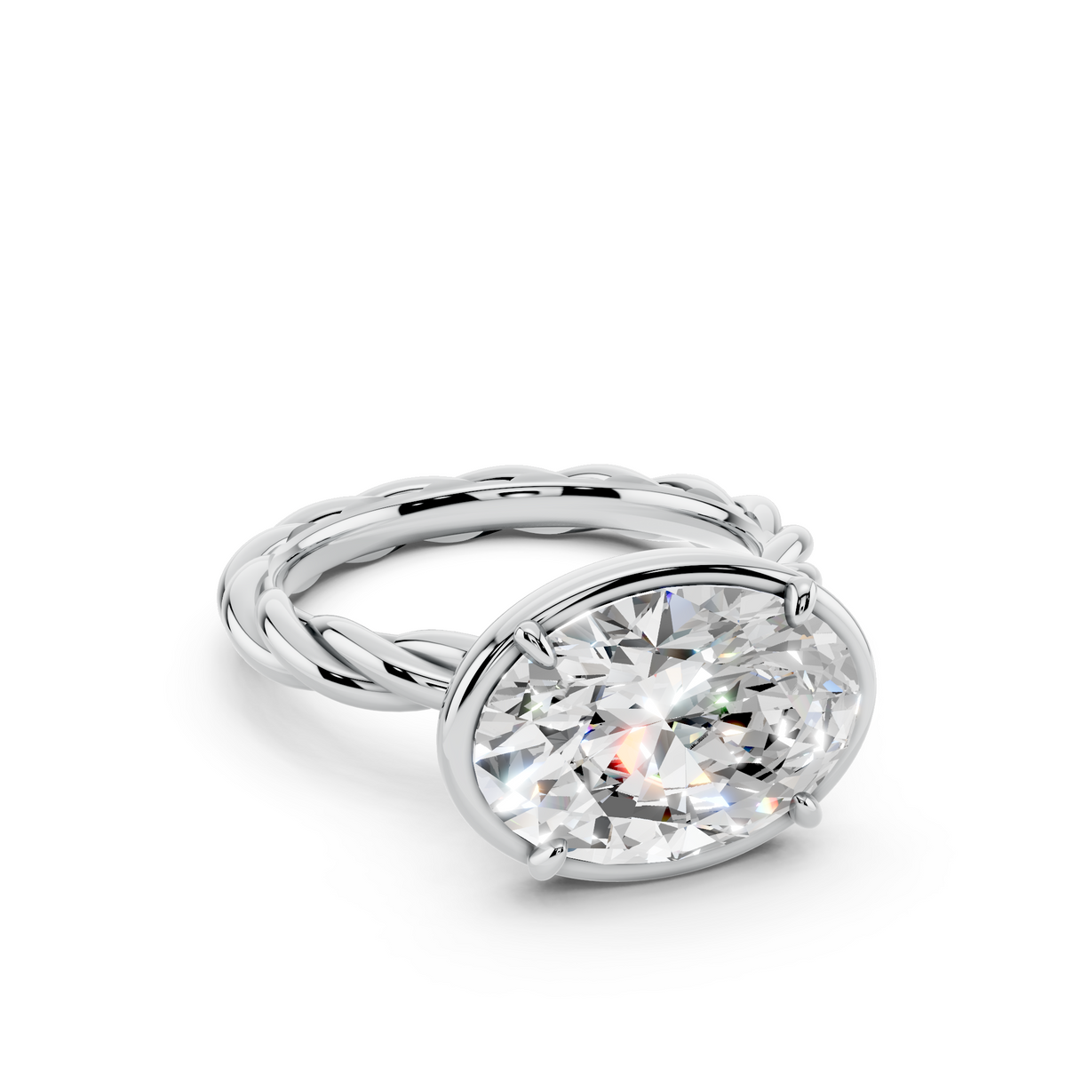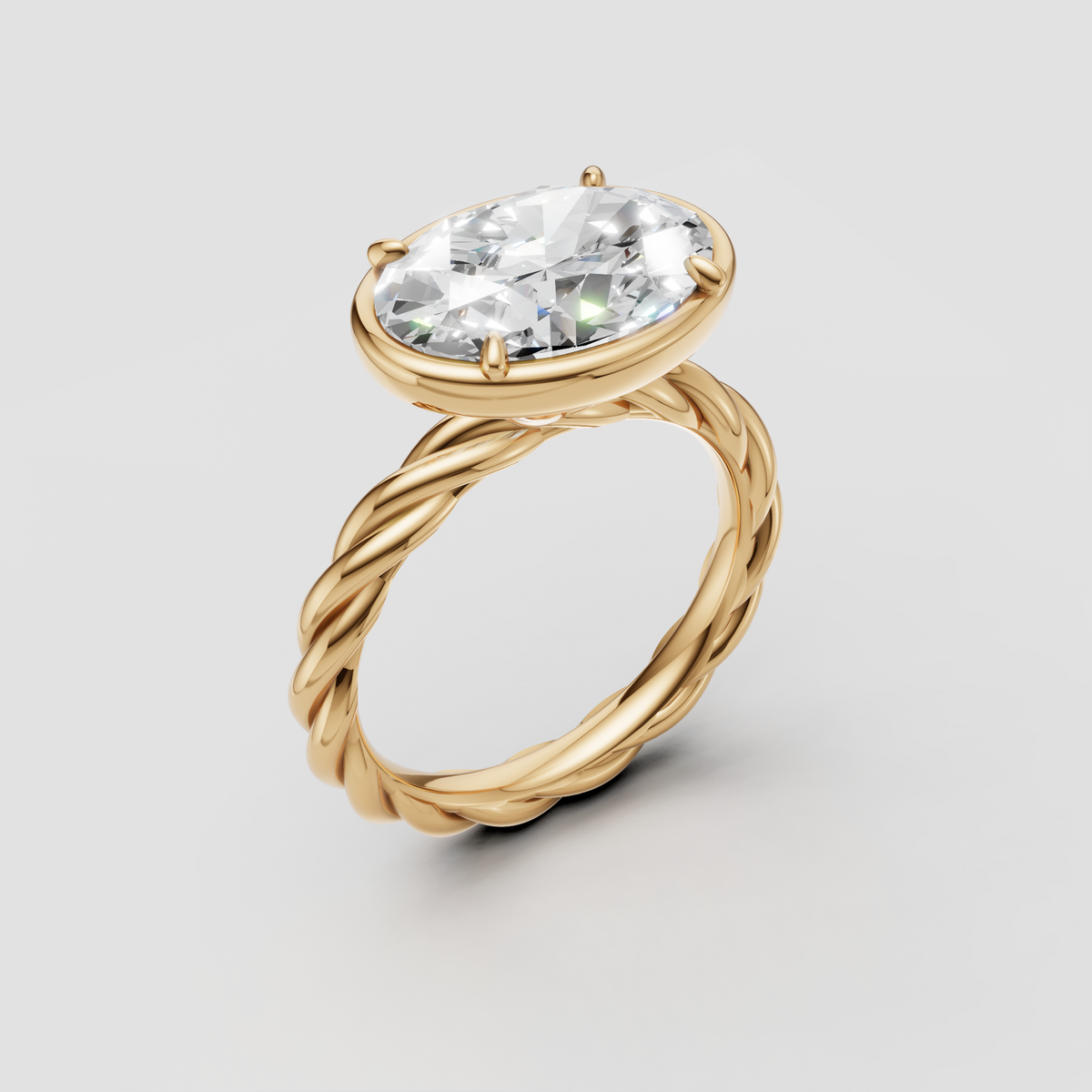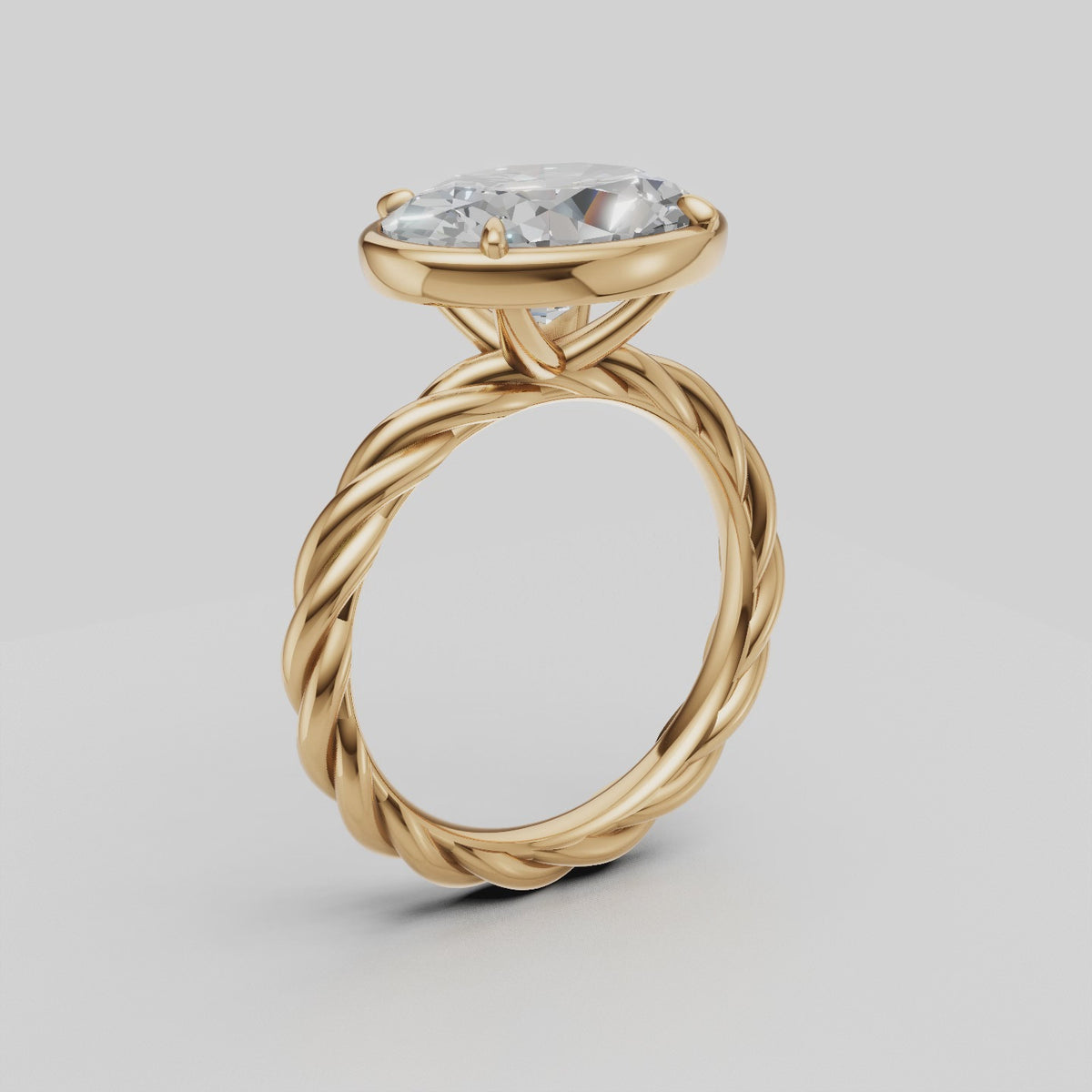 A brilliant oval diamond set on a sculptural rope band for timeless elegance.