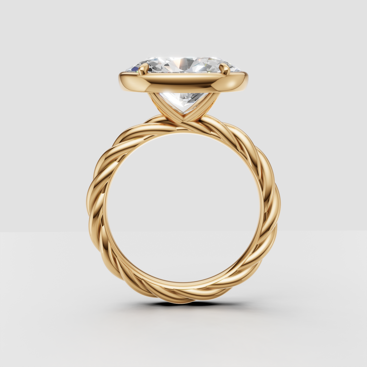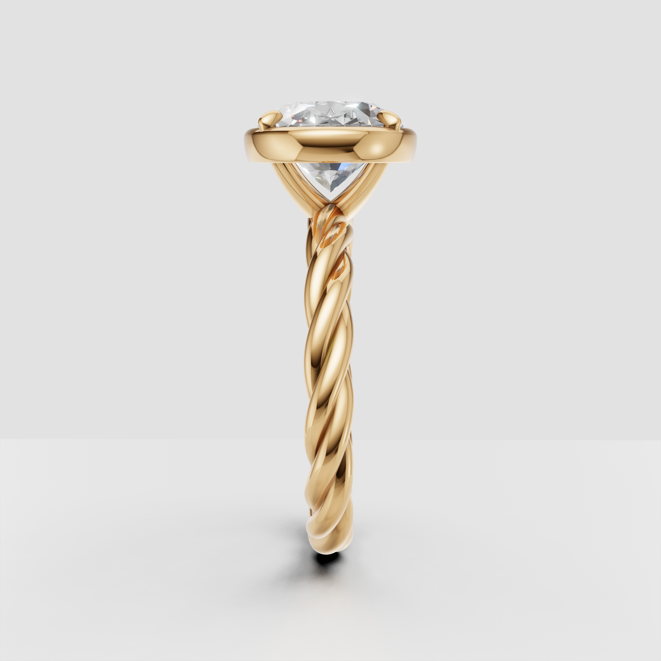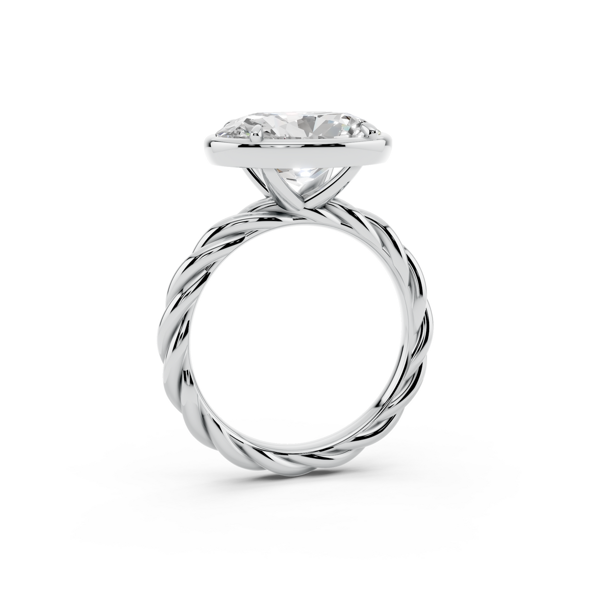 A brilliant oval diamond set on a sculptural rope band for timeless elegance.