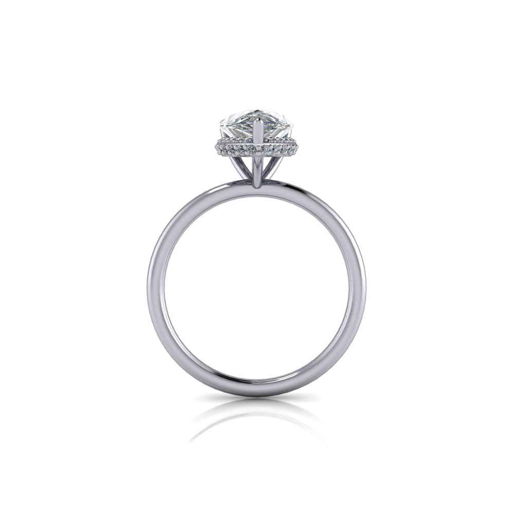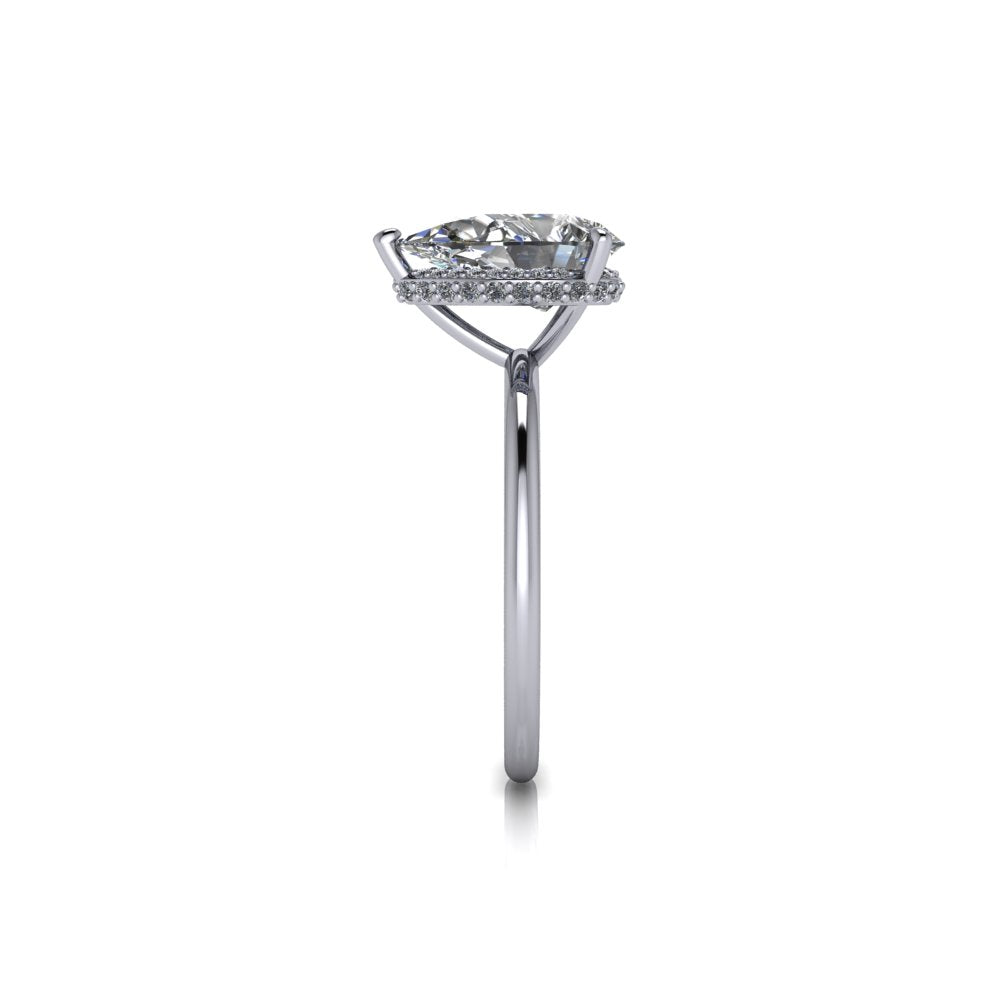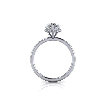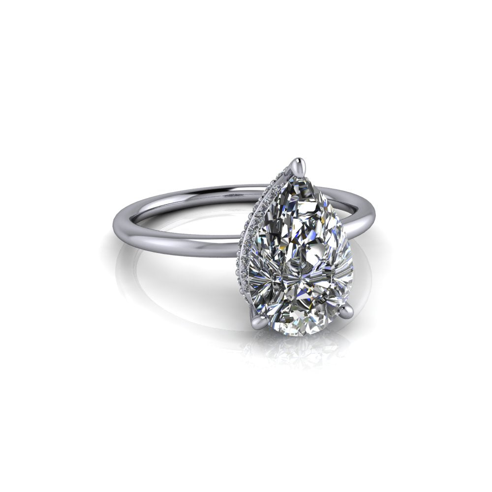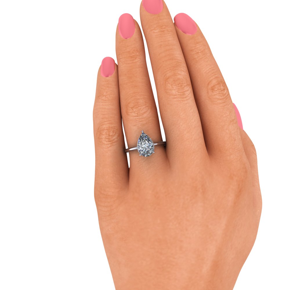 Anillo de compromiso de moissanita incoloro en forma de pera.