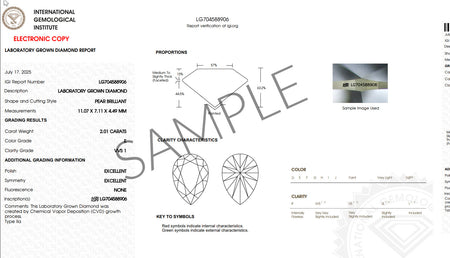 Moissanita incolora pera de 14x9 mm, 5,00 ct, color DEF, claridad VVS.