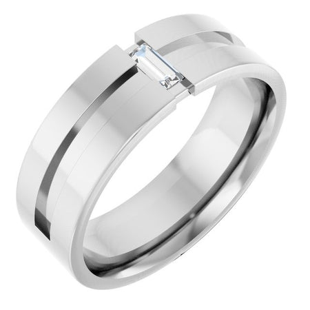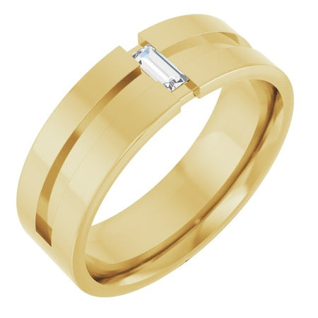 Alianza de boda para hombre con diamante redondo cultivado en laboratorio en engaste de bisel.