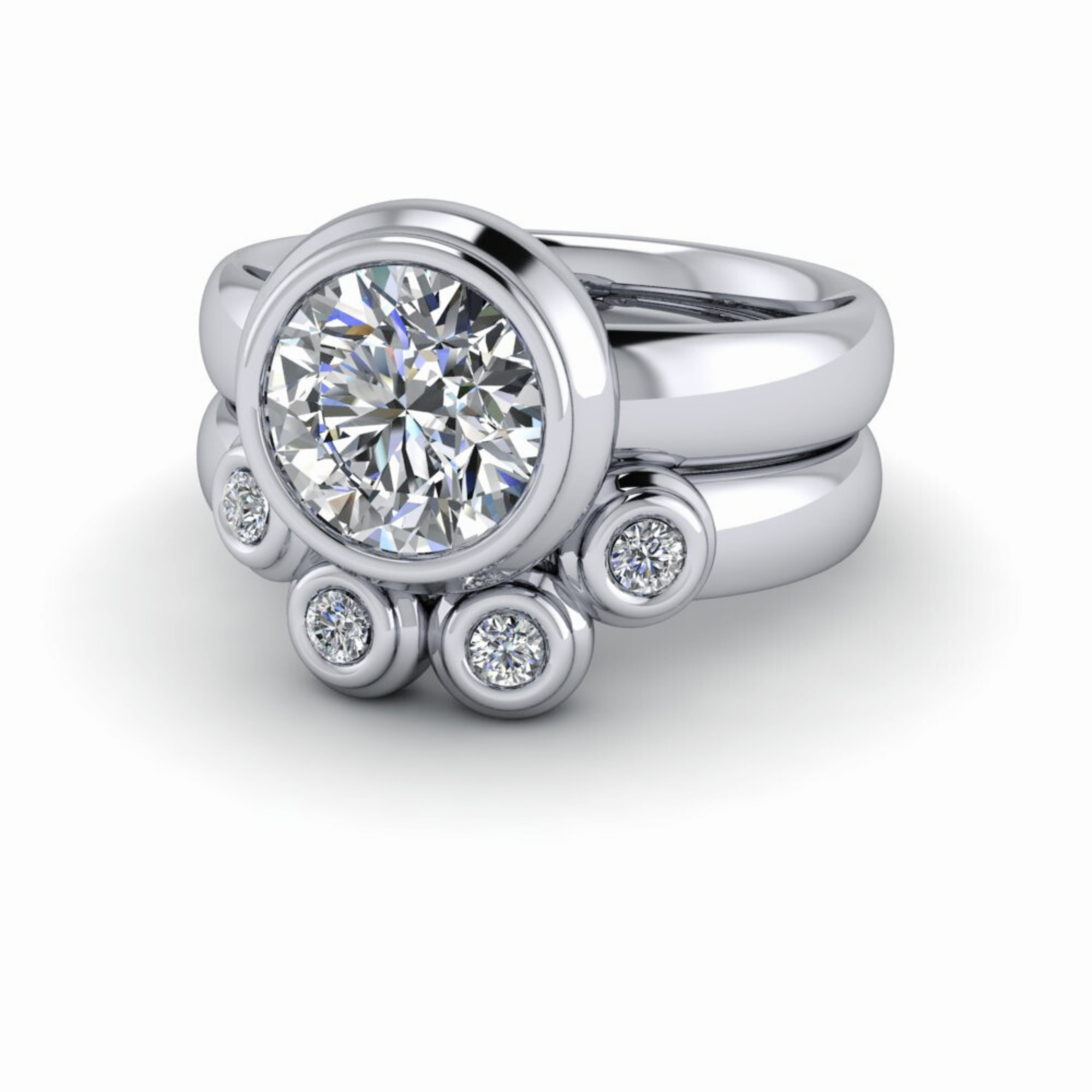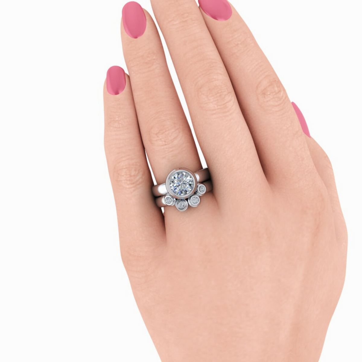 La colección nupcial Belle STACK ofrece elegancia y lujo sin esfuerzo con sus piezas apilables de diseño único. Moissanita redonda rodea la banda para crear hermosos anillos que encajan perfectamente para formar una apariencia deslumbrante. Cada pieza cuidadosamente seleccionada añade un toque especial, lo que hace de Belle STACK una opción hermosa y distinta para todas las futuras novias.