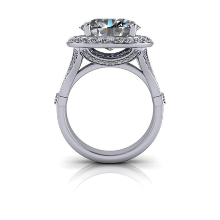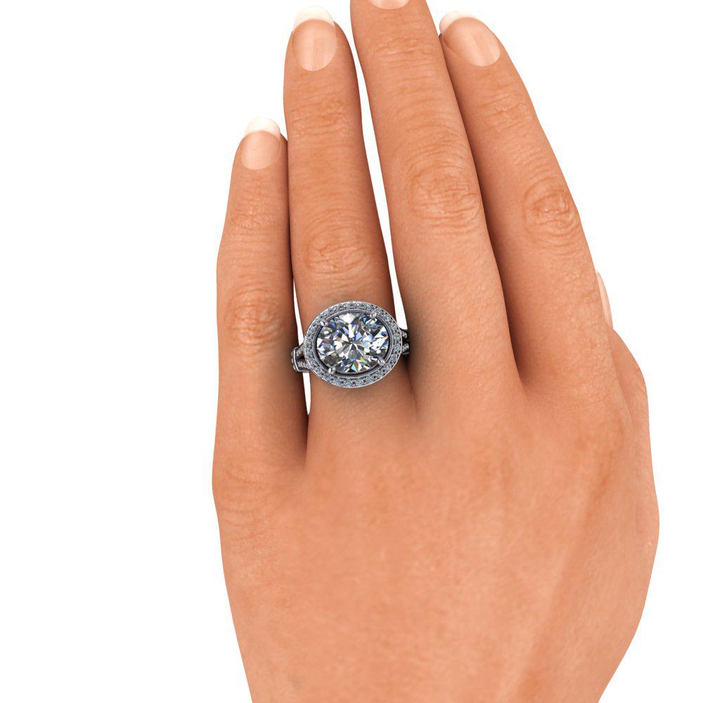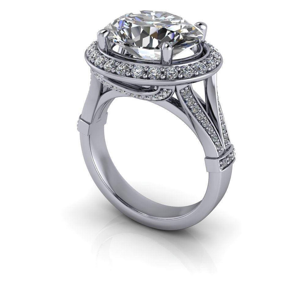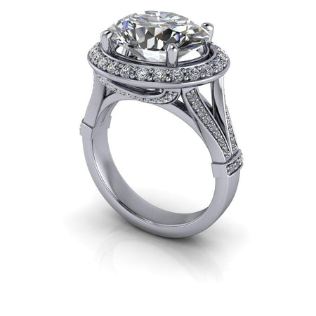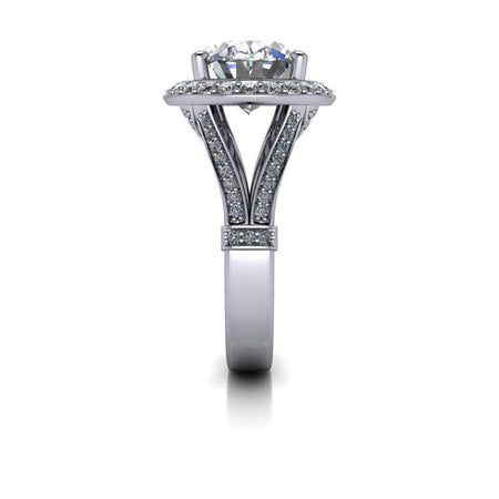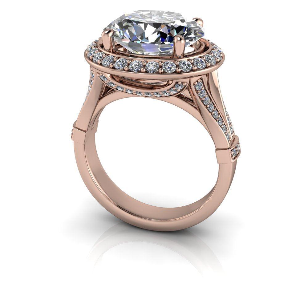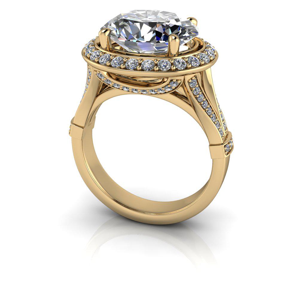 El anillo Isla-Rose No. 2 presenta una impresionante moissanita ovalada de gran tamaño engastada de este a oeste en un cuerpo dividido con halo. Elaborado con oro brillante, este sofisticado engaste resalta la belleza de la piedra central y crea una impresionante pieza que será admirada.