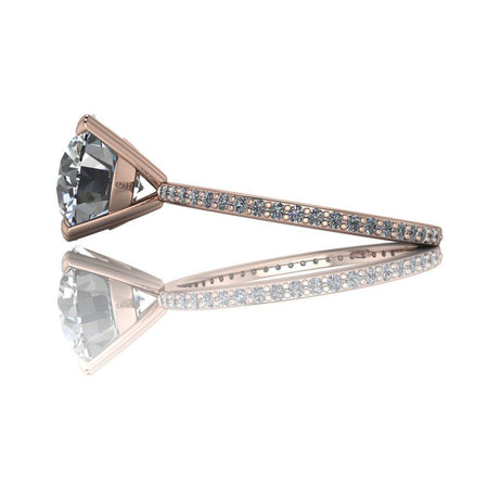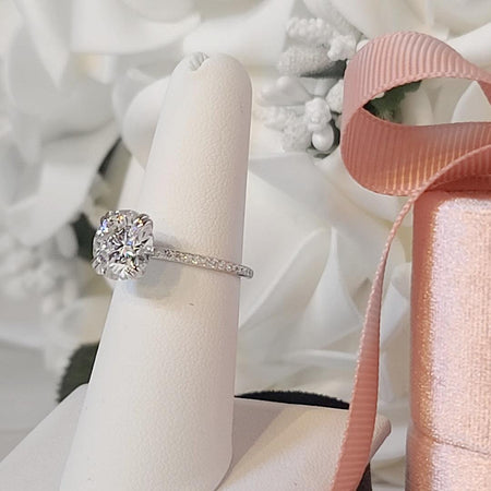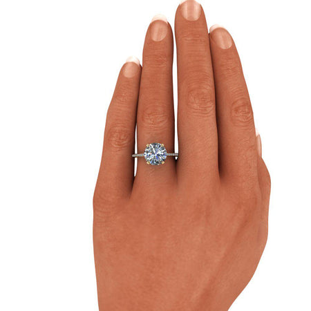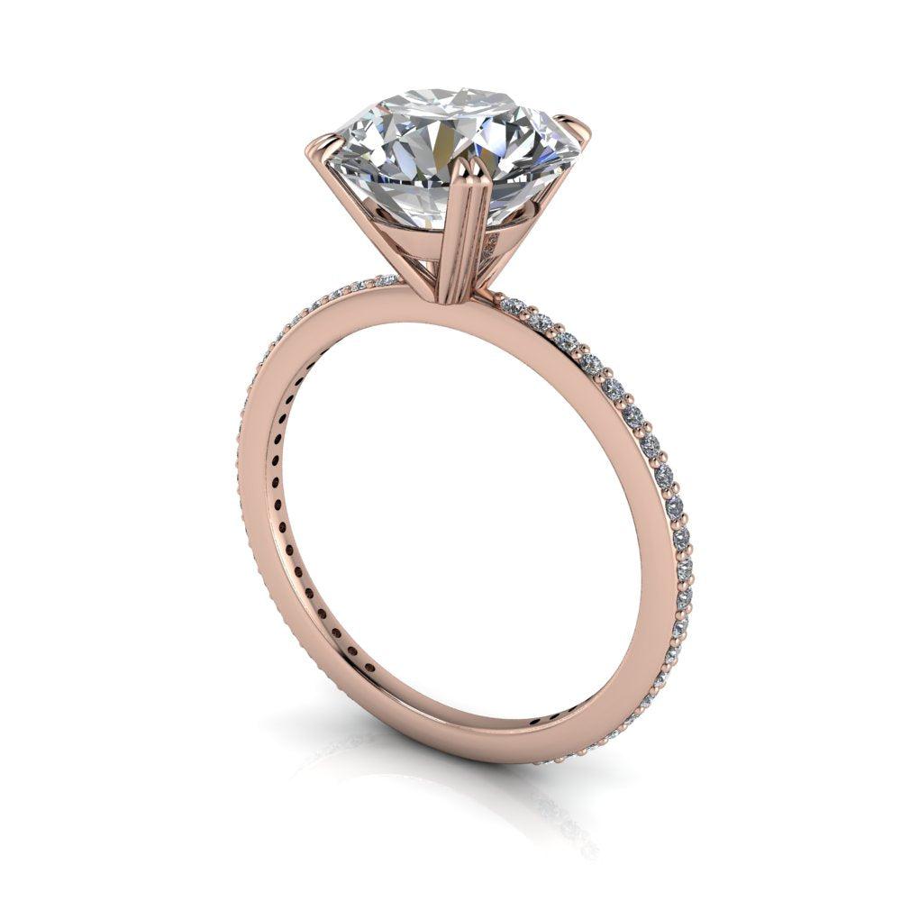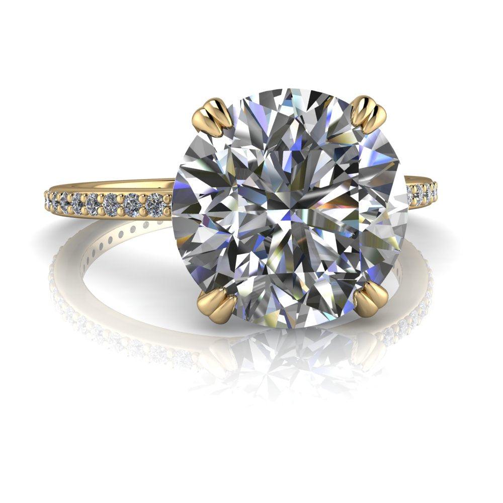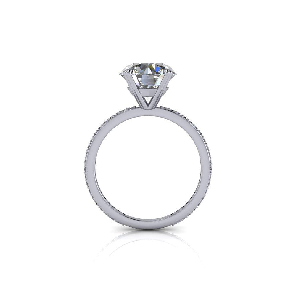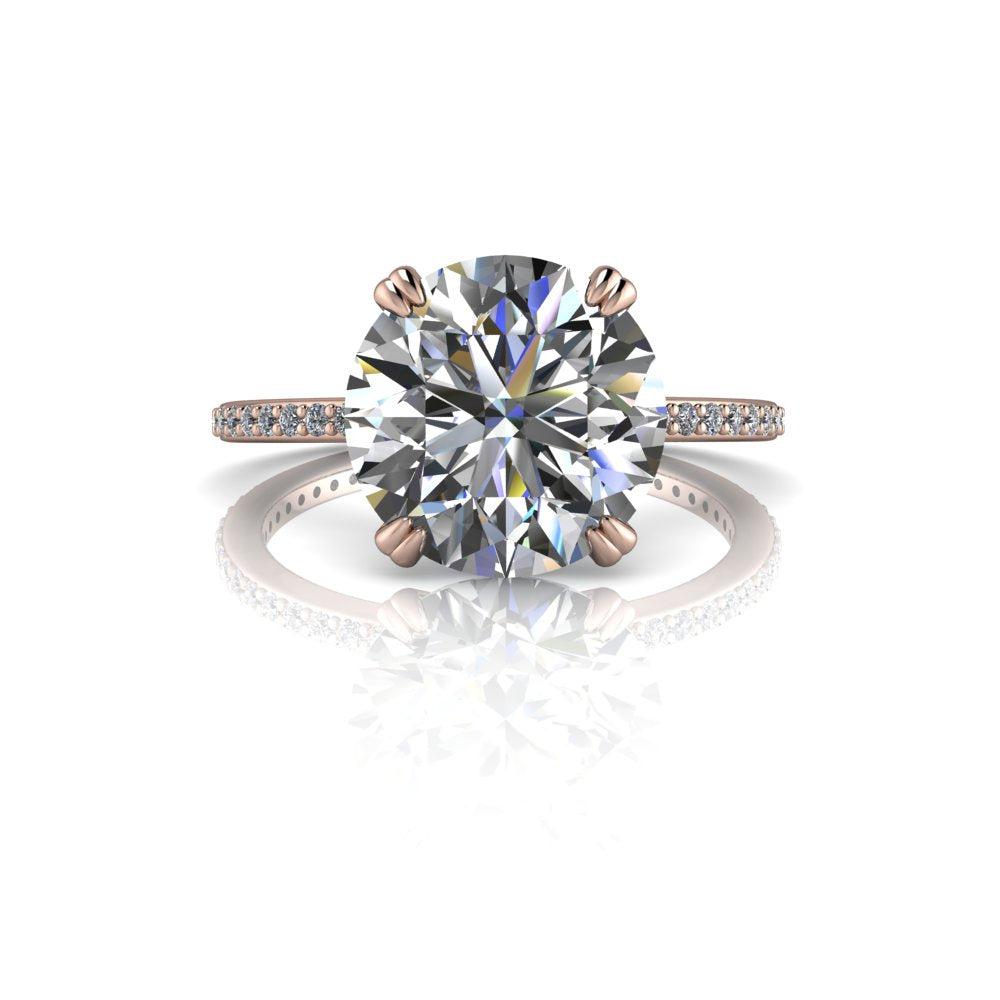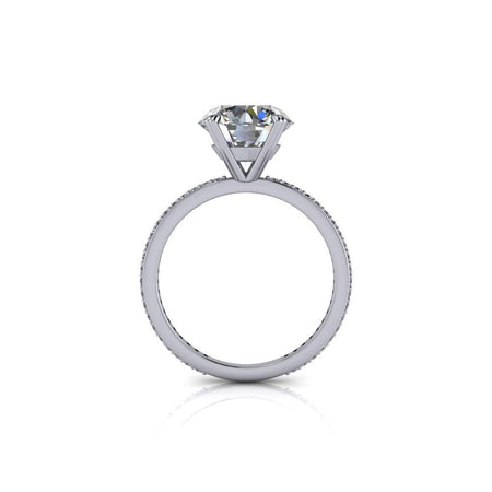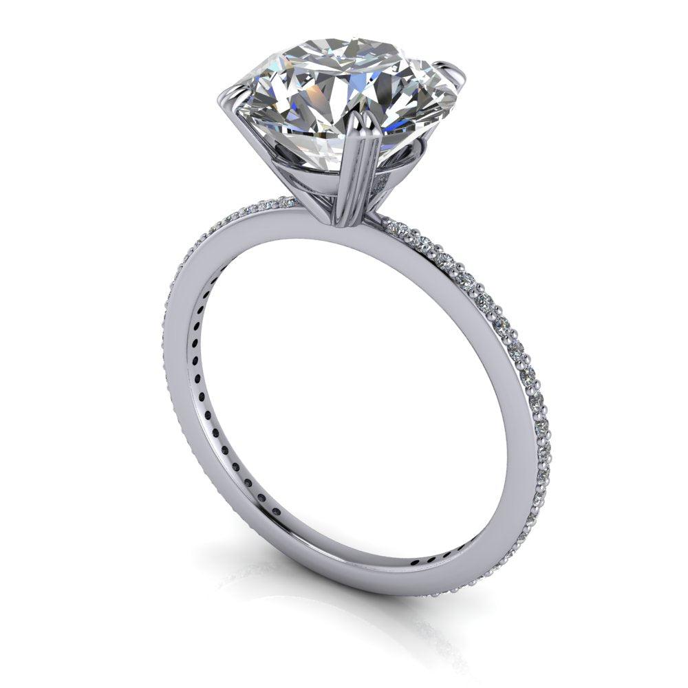 Anillo de compromiso de moissanita redondo incoloro con una banda fina.