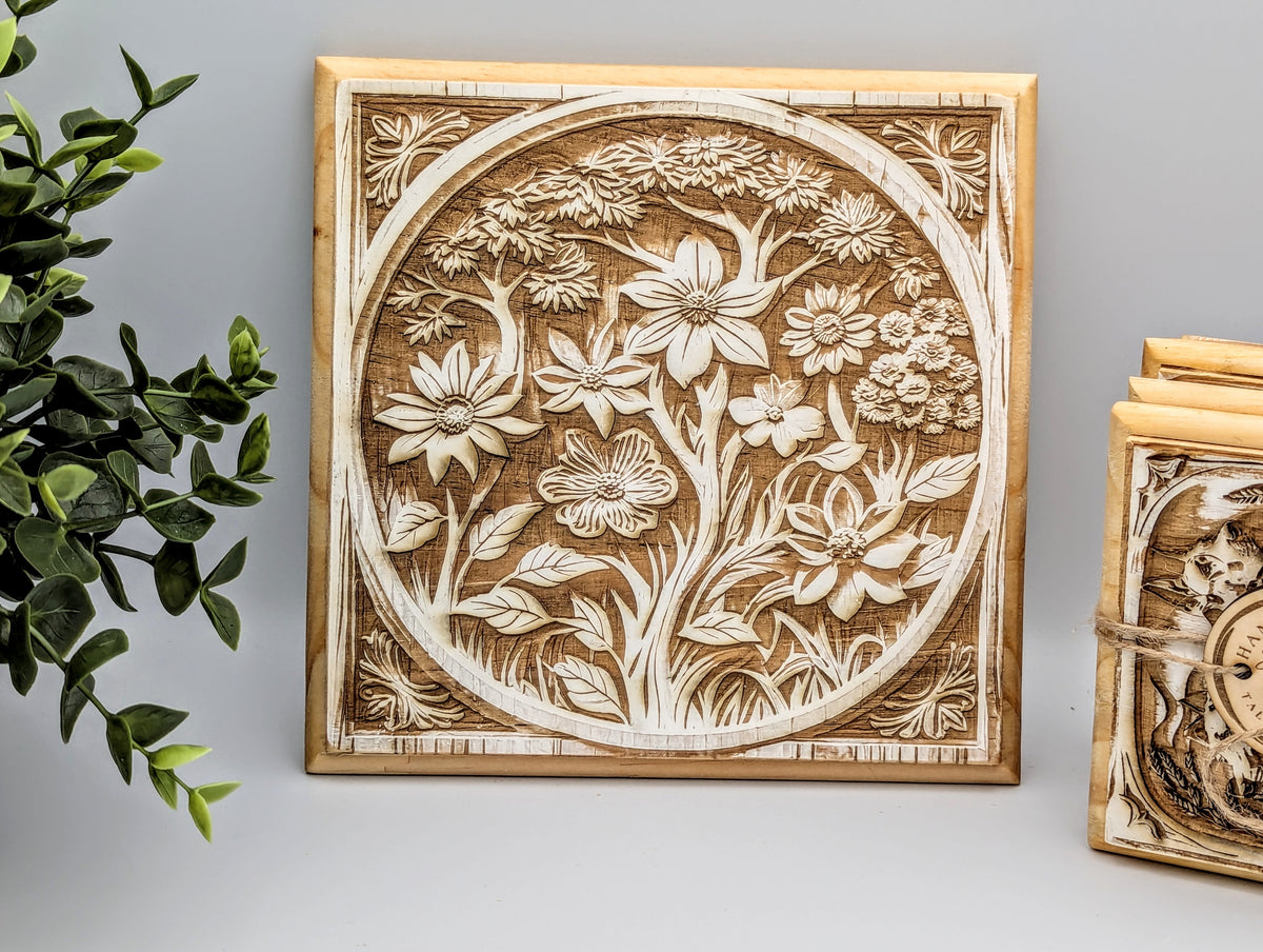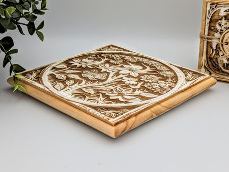The flower garden wood trivet will protect your countertops and dining surfaces from heat and scratches.
