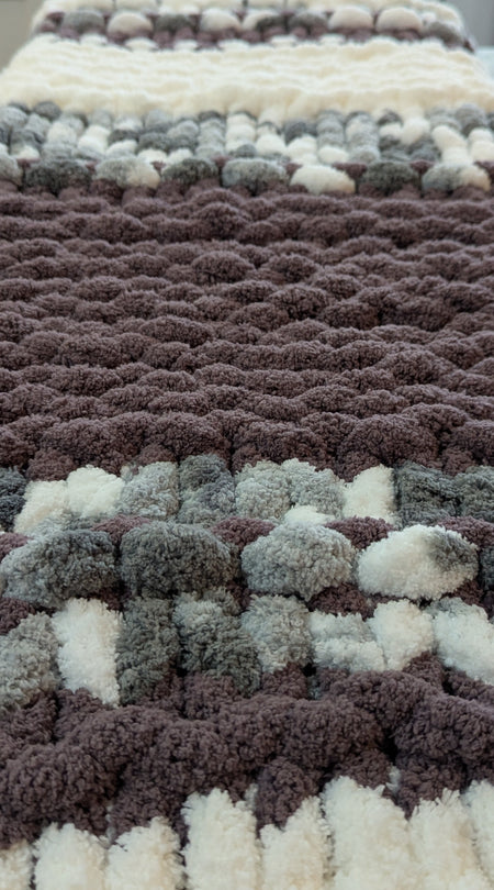 Designed to bring warmth, texture, and quiet luxury to your space, this oversized hand-knit blanket is crafted from ultra-soft chenille yarn in a sophisticated, multi-tone palette. Each blanket is carefully knit by hand, creating deep texture and dimension that feels as beautiful as it looks.
