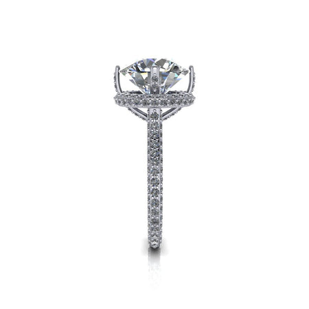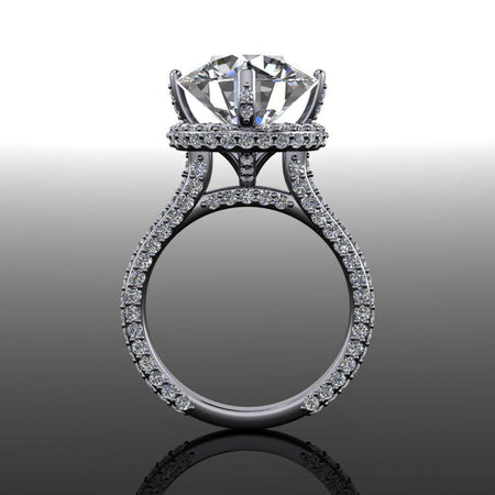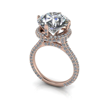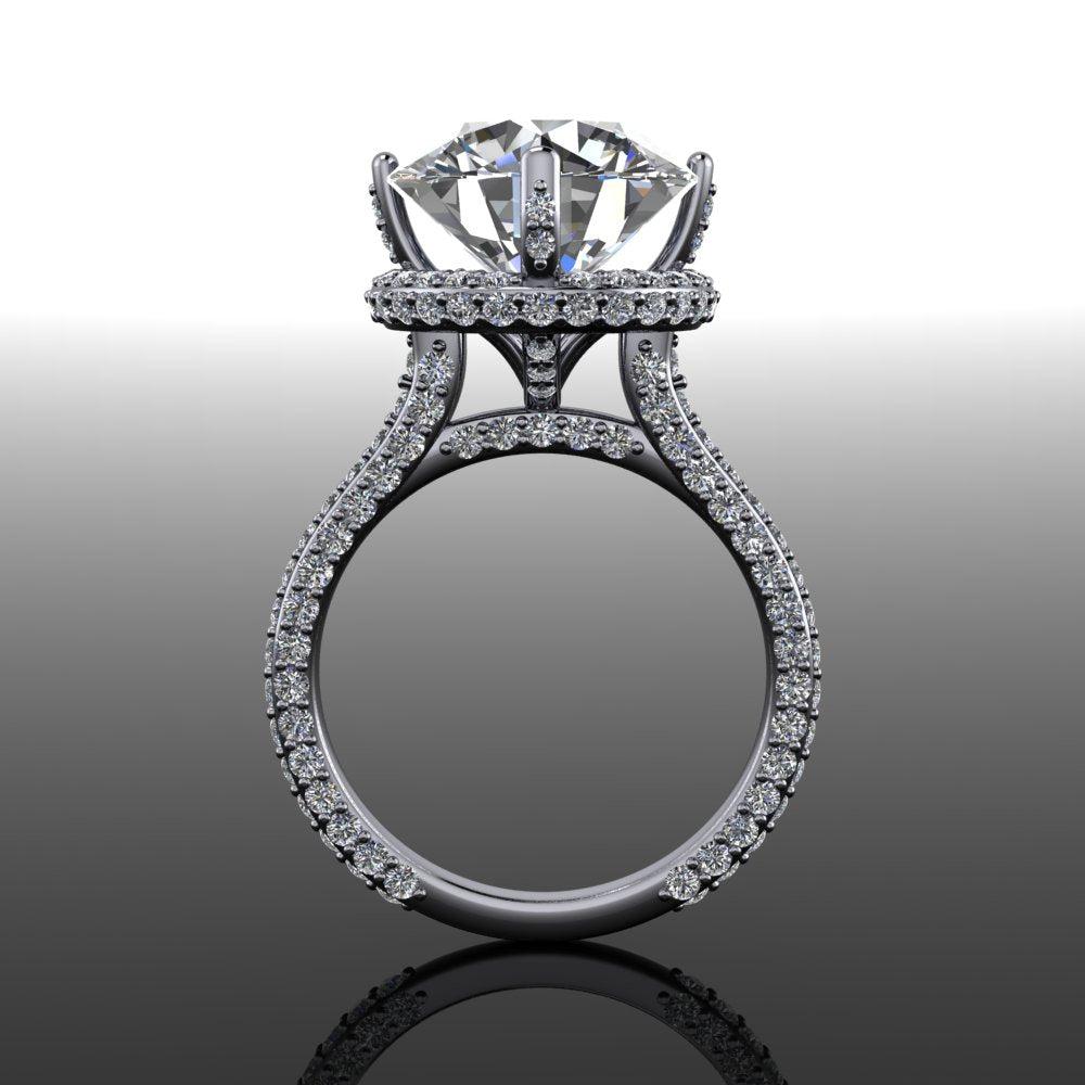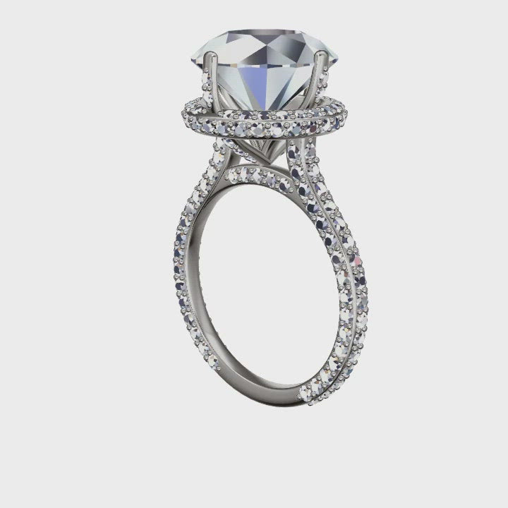 Juego de anillos de compromiso con halo oculto tipo catedral NSEW.