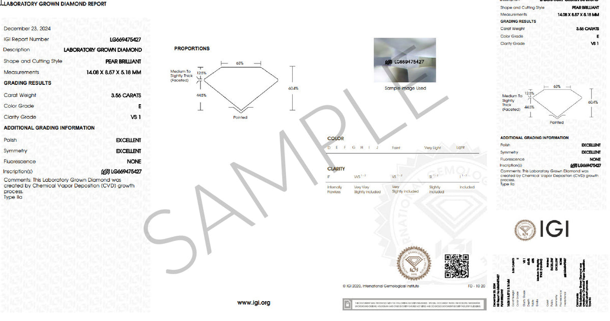 Loose Pear Shape Diamond, IGI Certified Lab Grown Diamond
