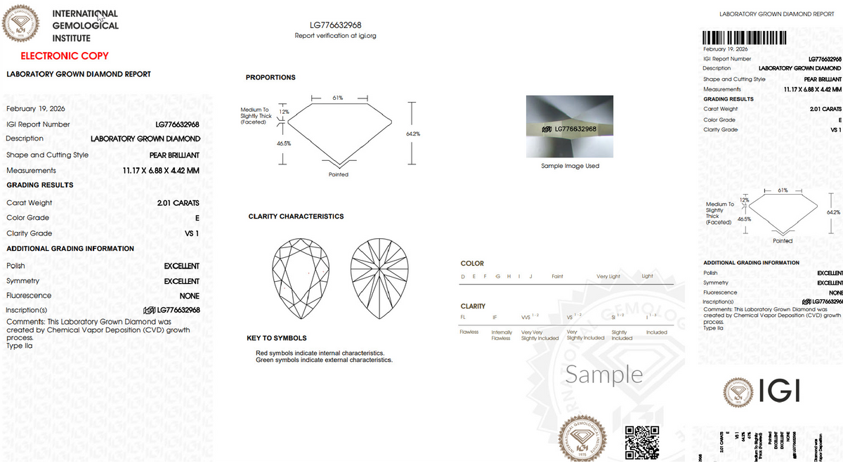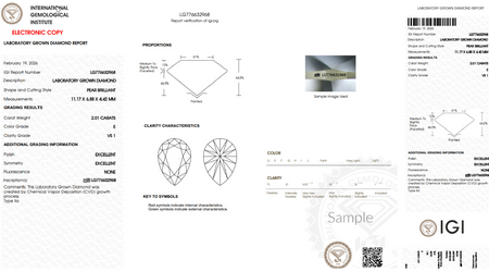Split shank lab grown diamond ring shown with an IGI certified 2.00 ct. pear shape lab grown diamond, E Color, VS Clarity.