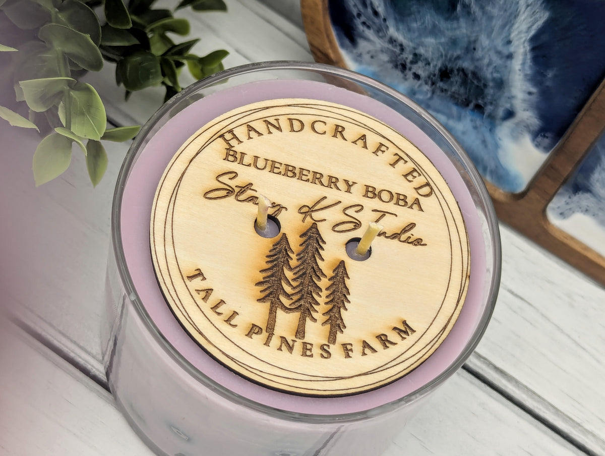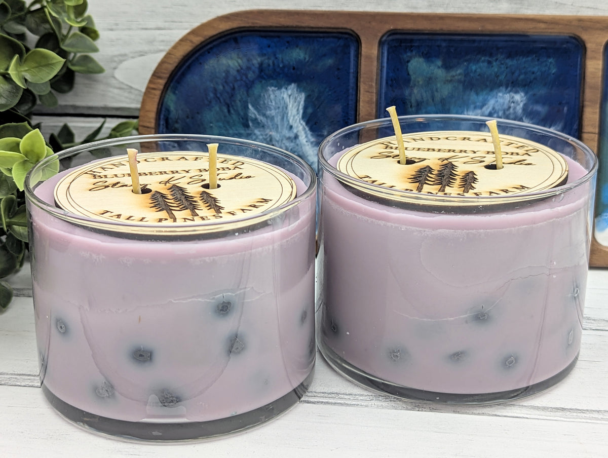 Blueberry Boba Natural Soy Wax Candle in a glass jar. Hand poured at our farm a 15oz candle in a glass jar with a dual wick.