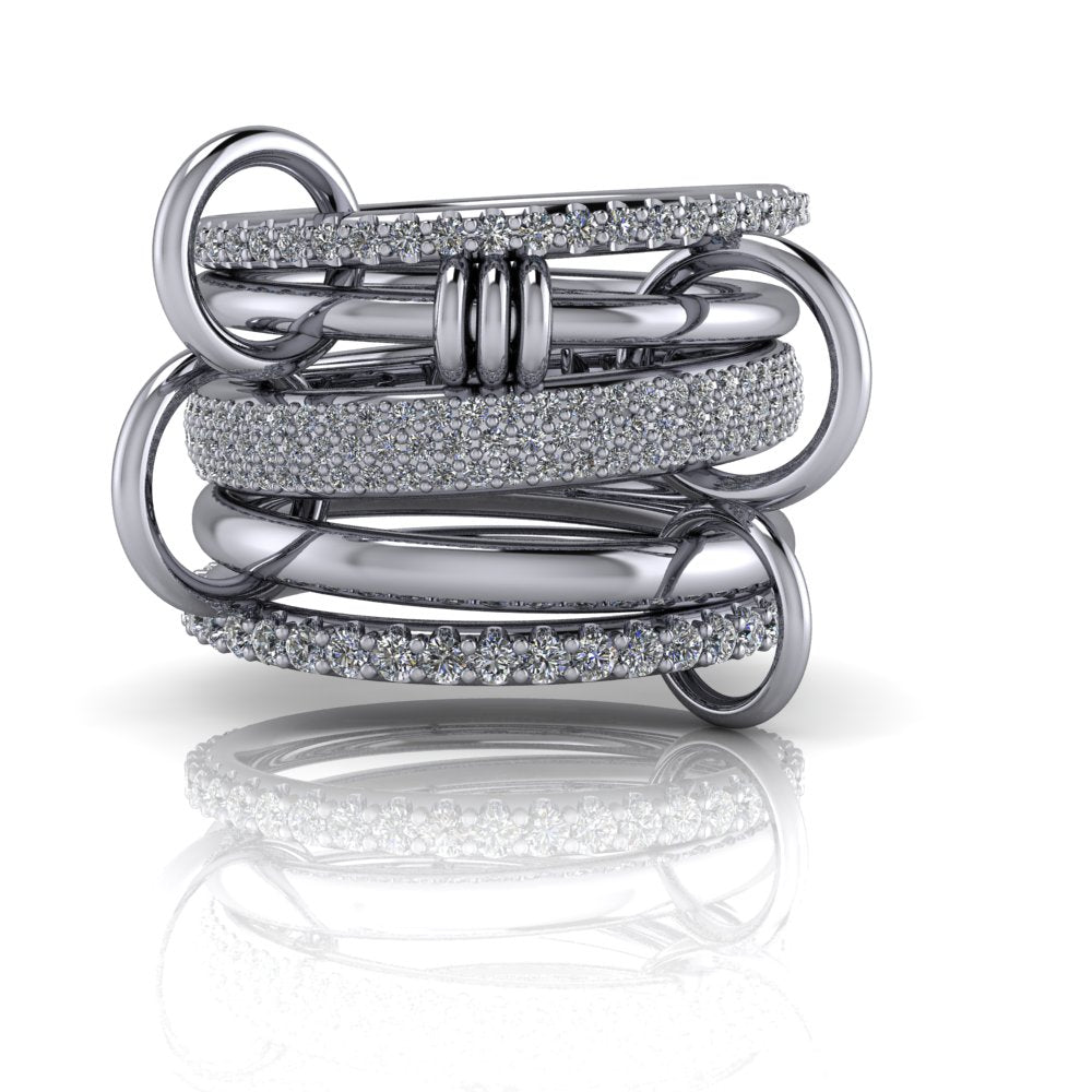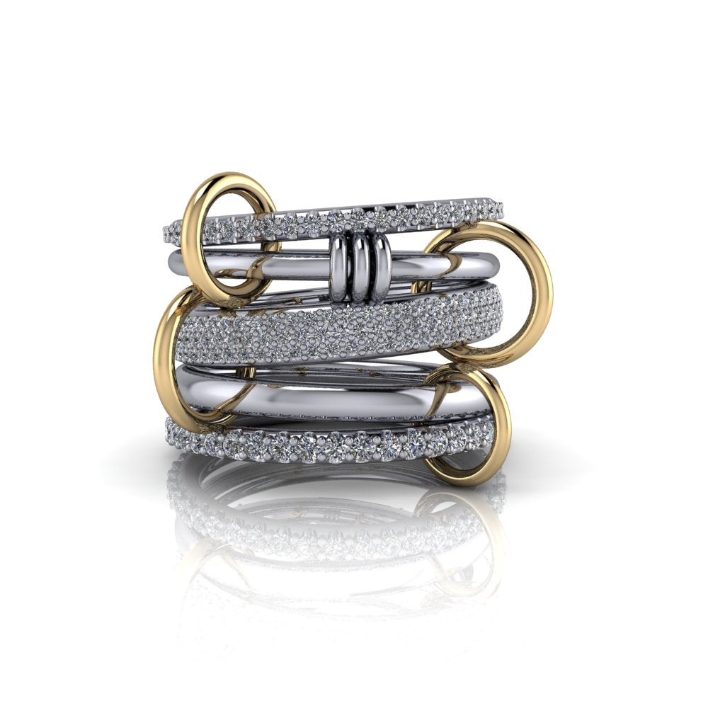 Le Link Stacker No. 2 est doté de bandes connectées et de gros anneaux pour une touche tendance. Conçu pour les personnes avant-gardistes, ce produit est parfait pour créer un look affirmé. Améliorez votre jeu de style avec cet accessoire indispensable.