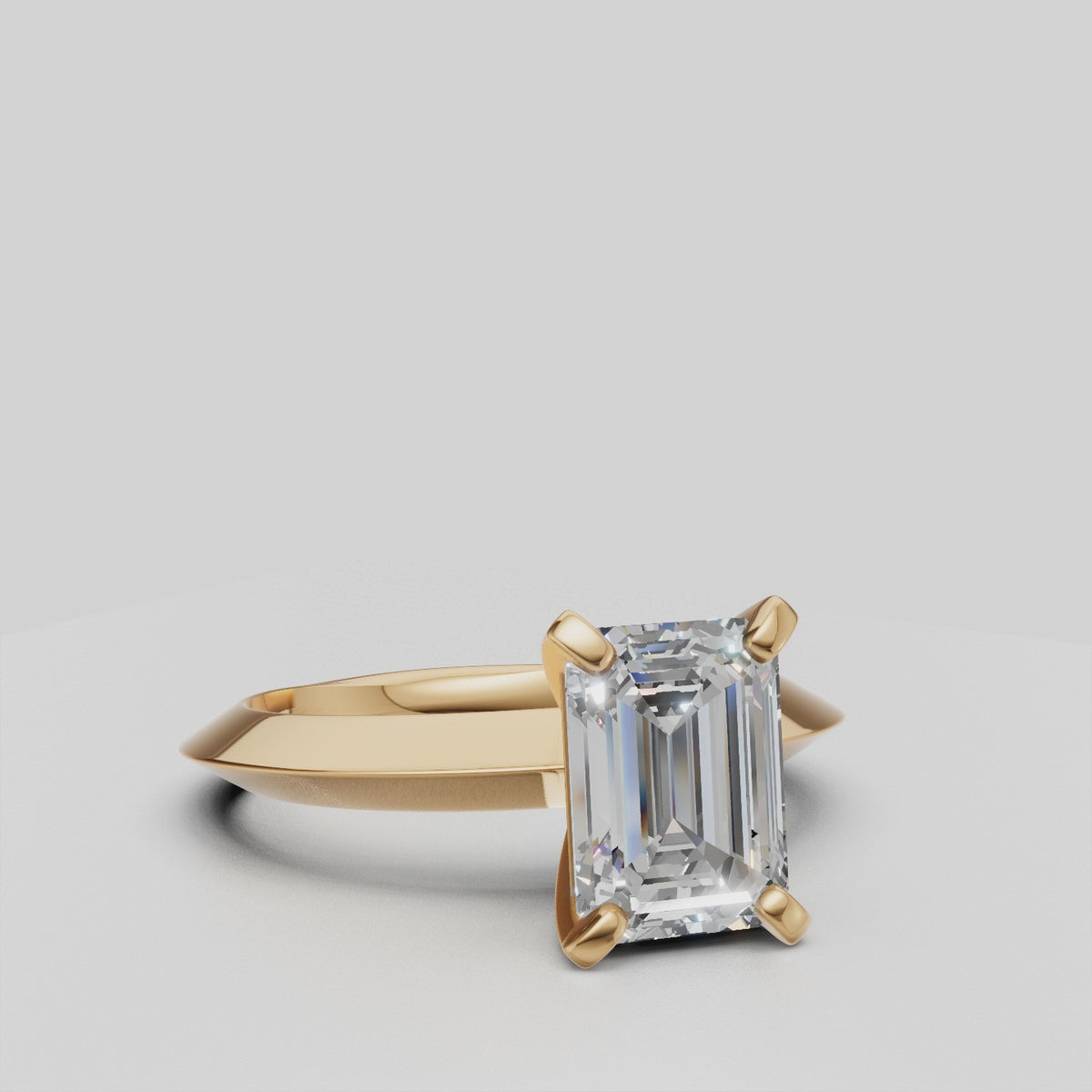 Expertly crafted with a knife edge solitaire setting, this lab grown diamond ring features an elegant emerald cut for a truly stunning engagement ring. Made with precision and care, this ring offers a timeless and unique design, perfect for a lifetime of love and devotion.