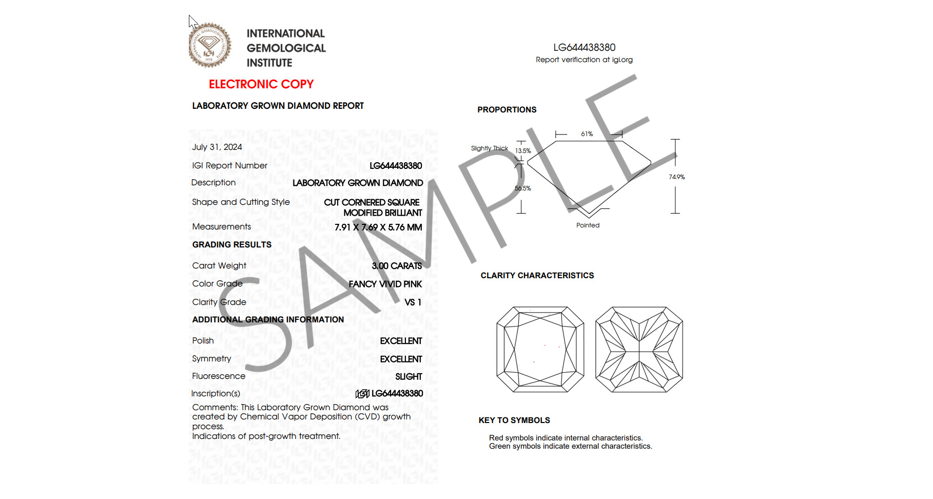 Lab Grown Loose Pink Diamond, Square Radiant 3CT