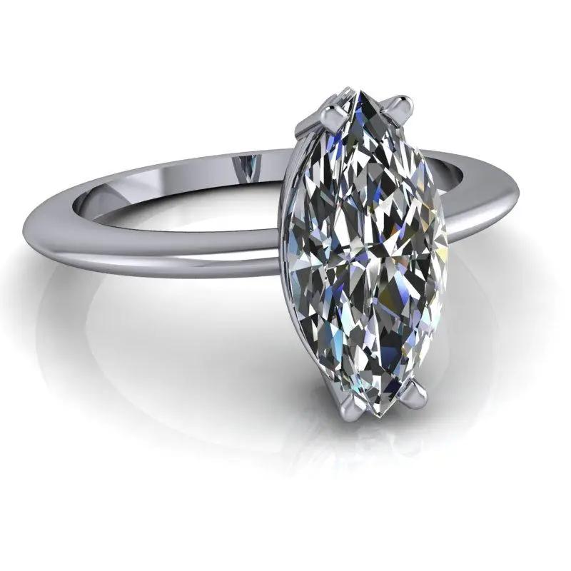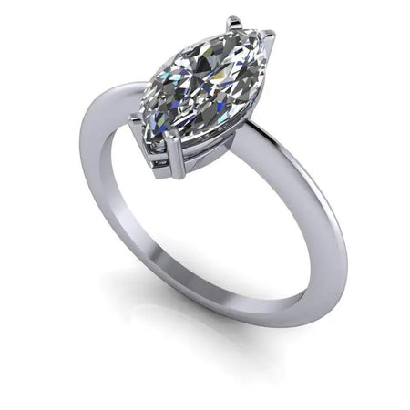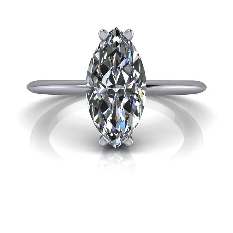 Bague de fiançailles moissanite taille marquise, solitaire, bande fine 1,80 ctw