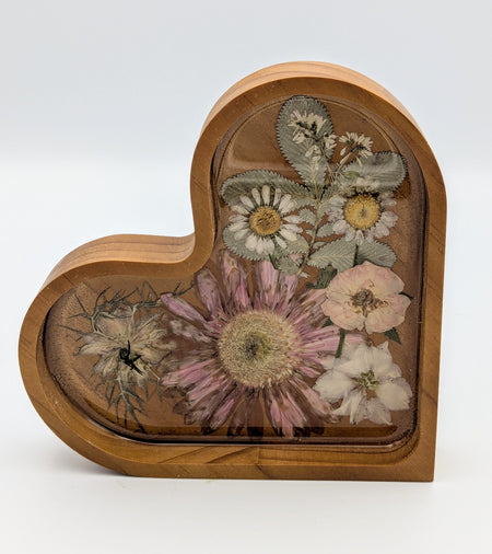 One-of-a-kind Ring Dish Perfect for nightstand or dresser. The delicate dried flowers add a charming touch, preserved forever under clear resin.