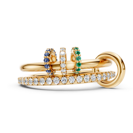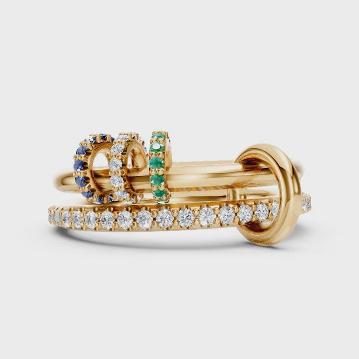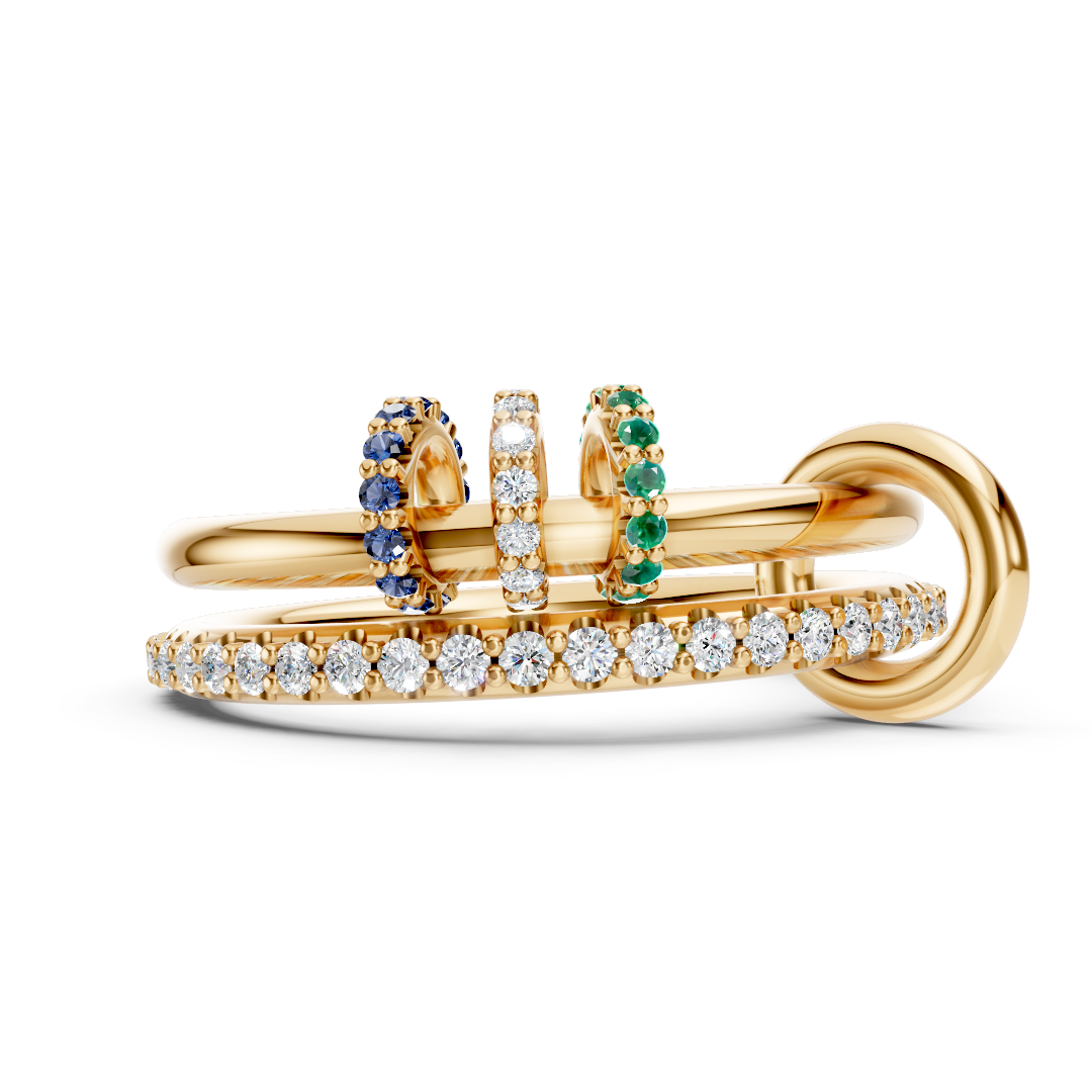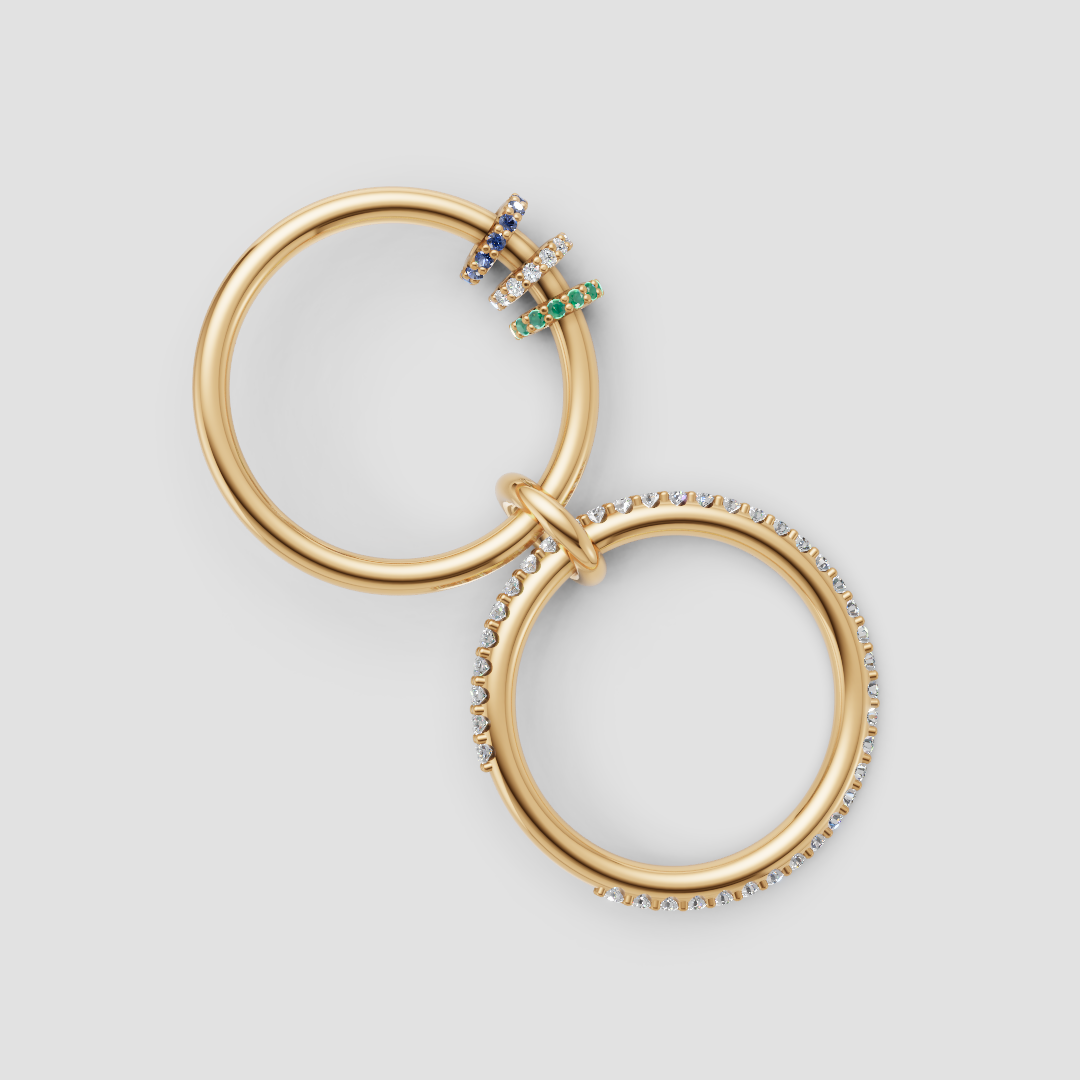 A luminous connected ring with free-moving gemstone charms, designed to move with you.