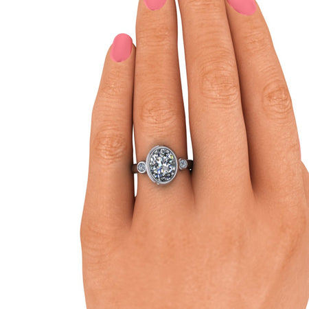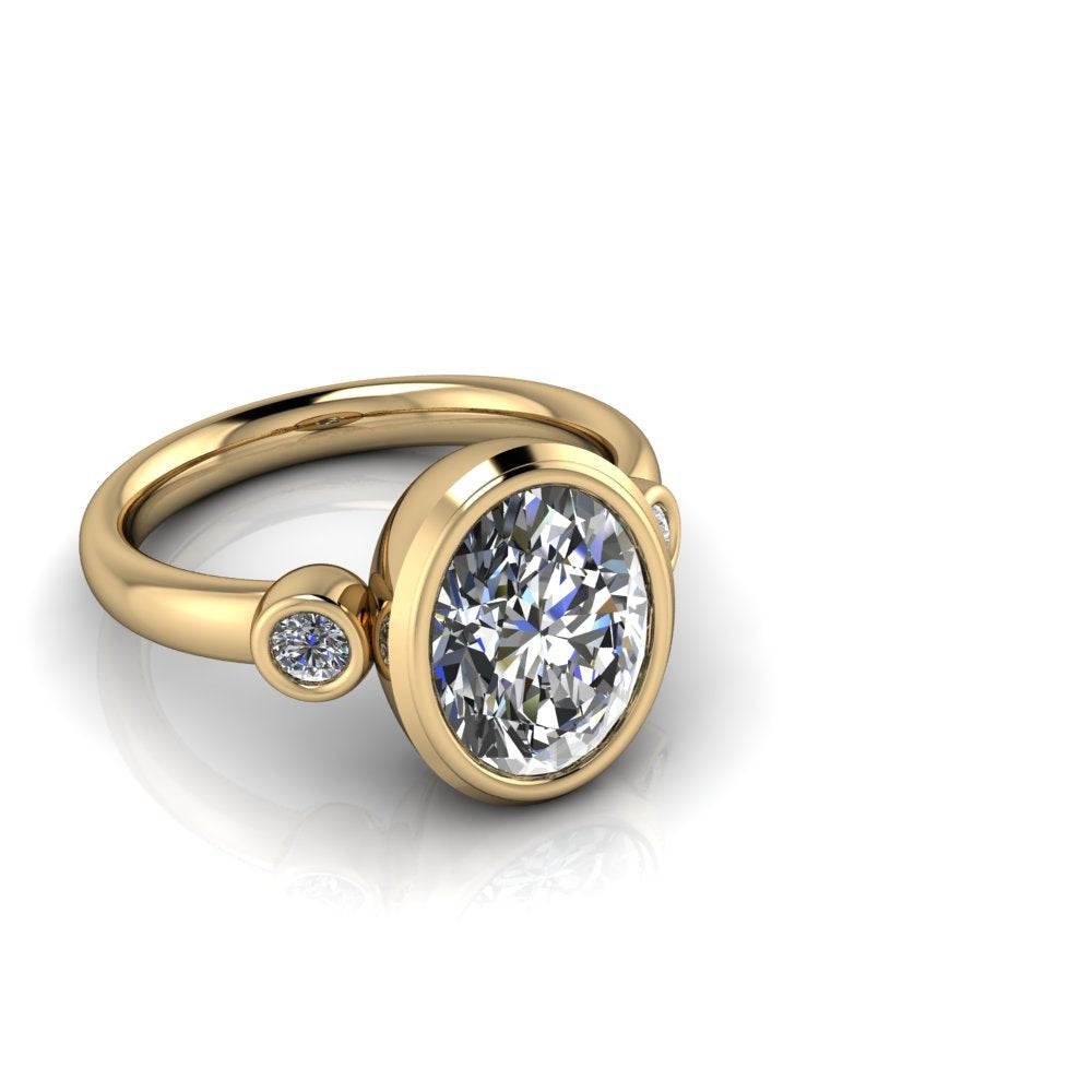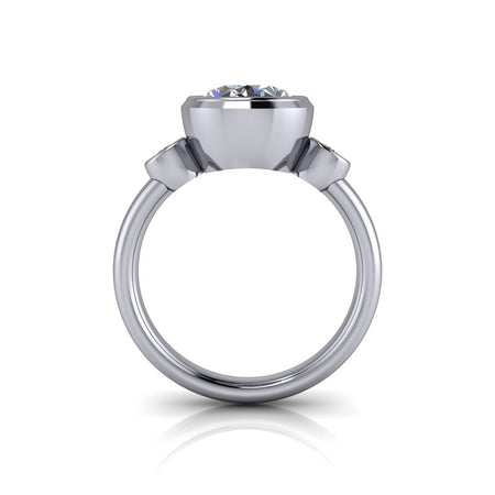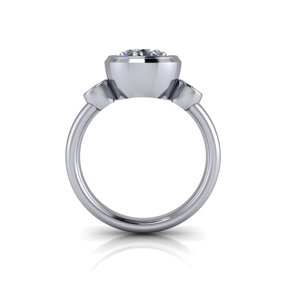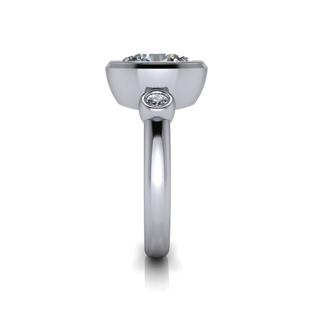 Bague de fiançailles moissanite à trois pierres présentée avec une moissanite incolore poire de 12 x 8 mm, 3,57 ct, couleur DEF, clarté VVS.