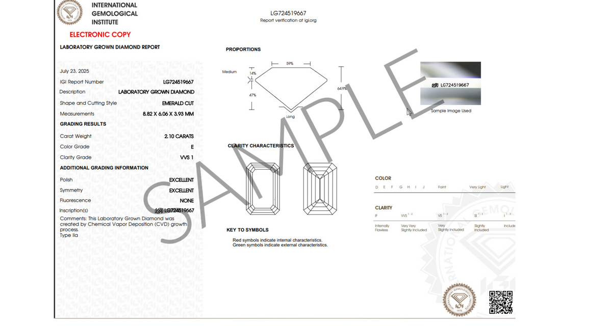 2.00 ct. IGI Certified Emerald Cut Lab Grown Diamond, F Color, VS1 Clarity.