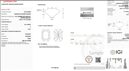 ⢠Radiant Cut Lab-Grown Diamond, 3.60 ct.