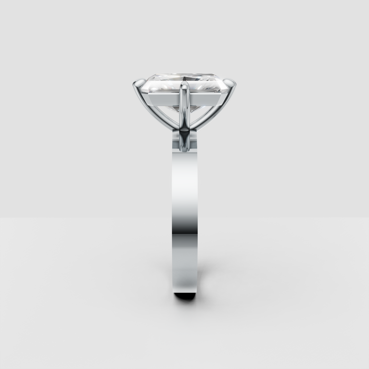 A large radiant cut lab-grown diamond sits confidently in a cigar band setting, secured North-South-East-West for a bold, architectural silhouette. The wide 3mm comfort fit band gives it weight and balance without sacrificing wearability.