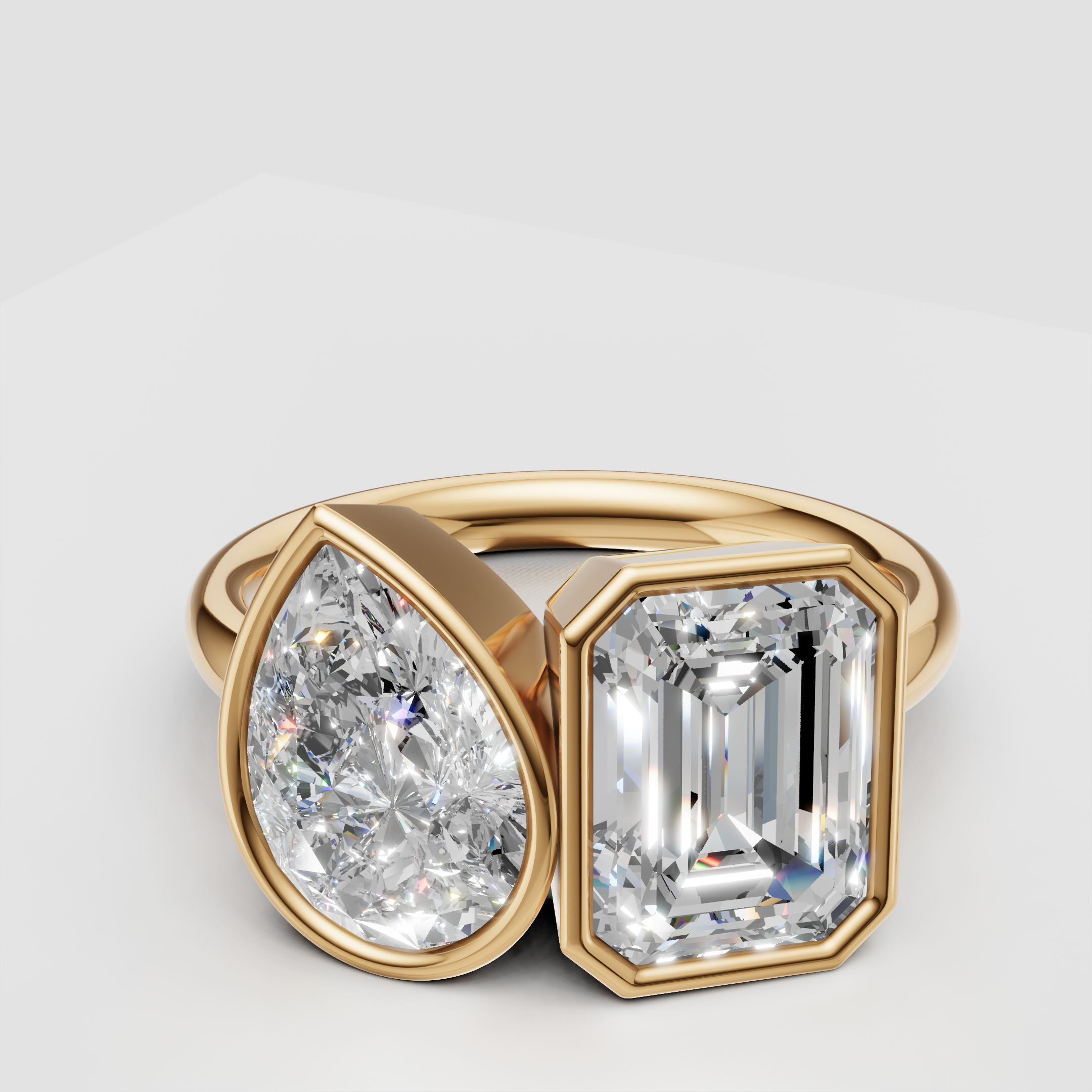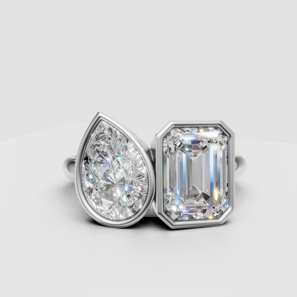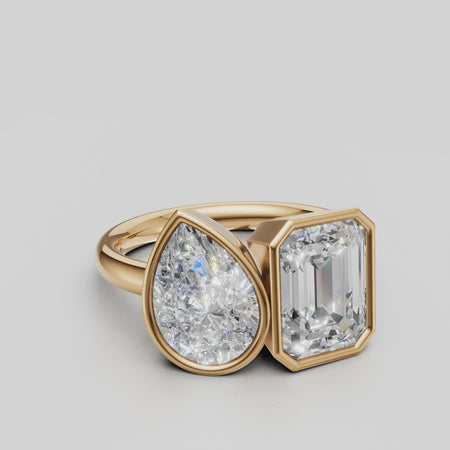 Bezel Set Toi et Moi Ring – Emerald Cut & Pear Lab Diamond Two Stone Ring, 4.00 CTW