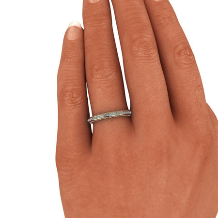 Moissanite wedding band set with (107) Round colorless moissanite, .60 ct.