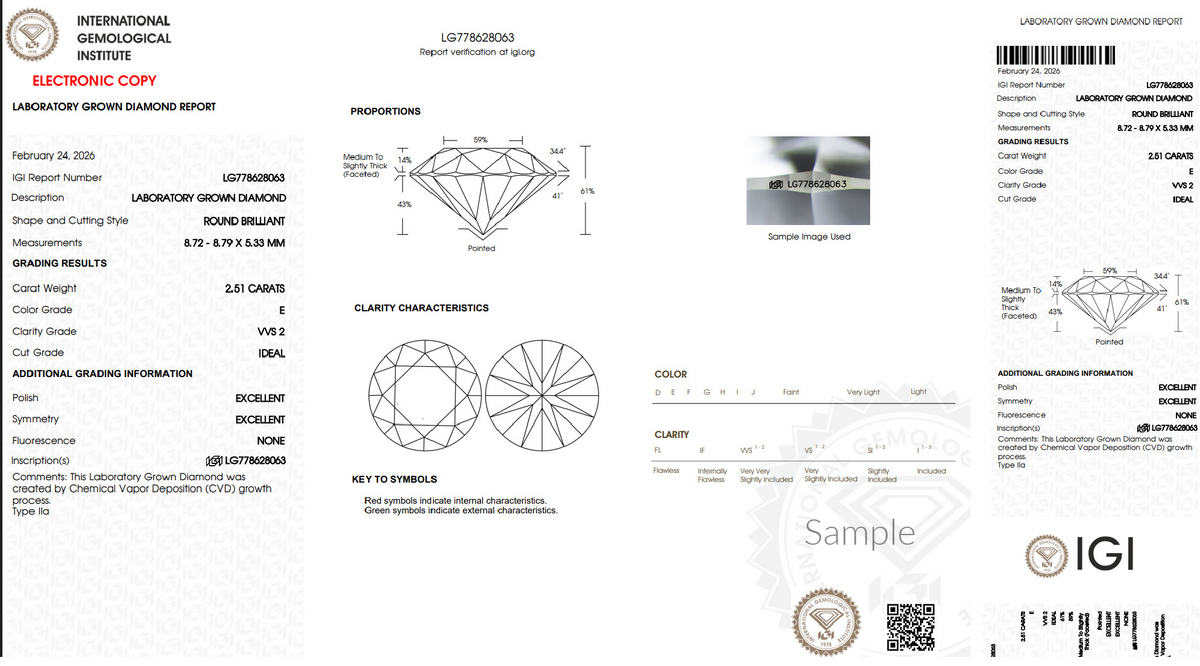 A timeless design that lets exceptional brilliance take center stage. This elegant engagement ring features a stunning 2.5 carat round lab grown diamond, IGI certified with E color and VVS2 clarity, offering remarkable sparkle and near-perfect purity.