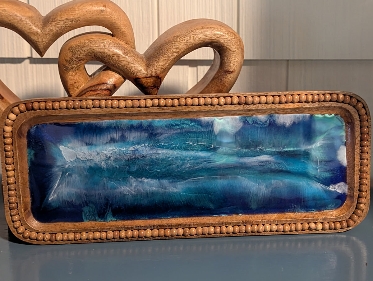 Deep Blue Ocean Wood Tray for Home Decor