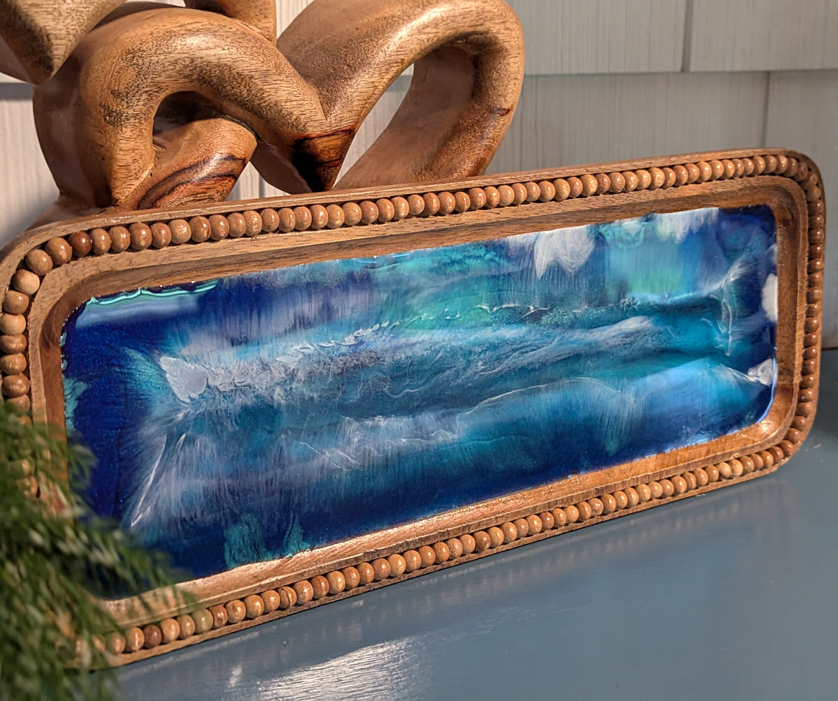 One of a kind beaded ocean wood tray covered This tray is perfect for jewelry storage, the vanity, the kitchen, or bathroom decor.Â