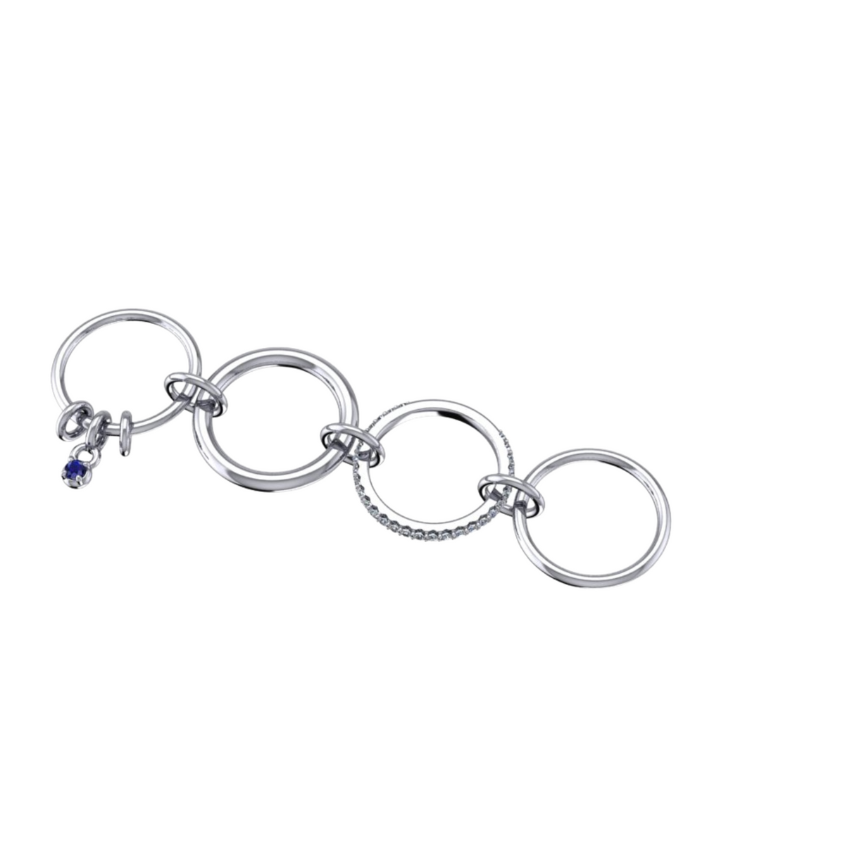 2mm, band with 3 free moving links and blue sapphire charm, .11 ct.