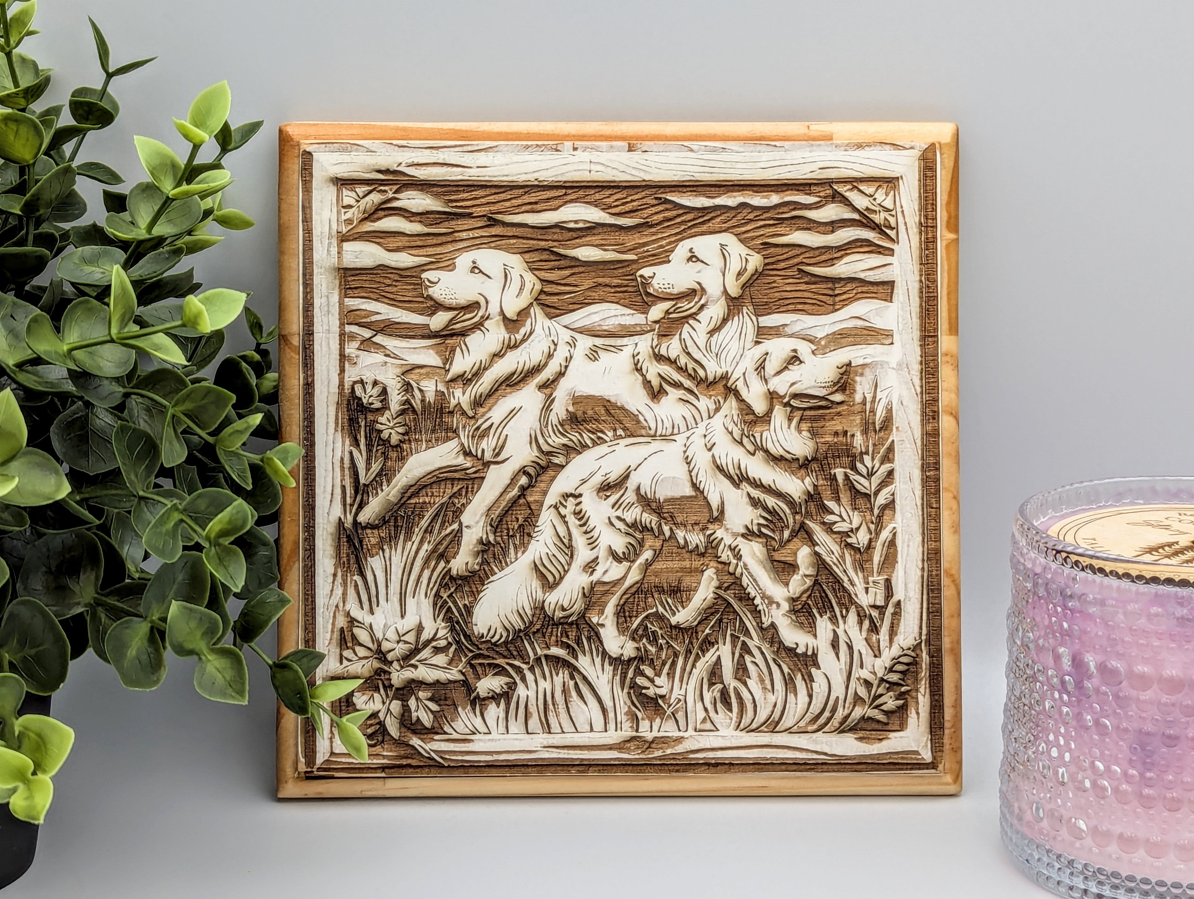 The perfect gift for the dog lover, a golden retriever repurposed wood trivet will protect your countertops and dining surfaces from heat and scratches.