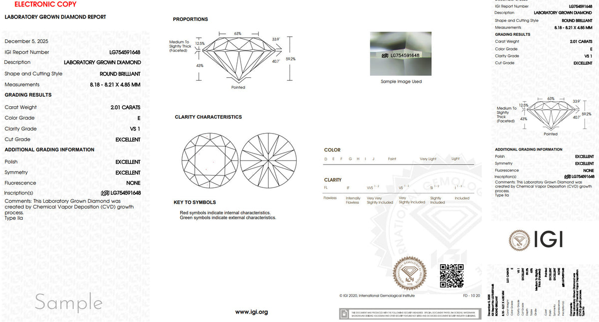 Center Stone: 2.00 ct. round lab-grown diamond