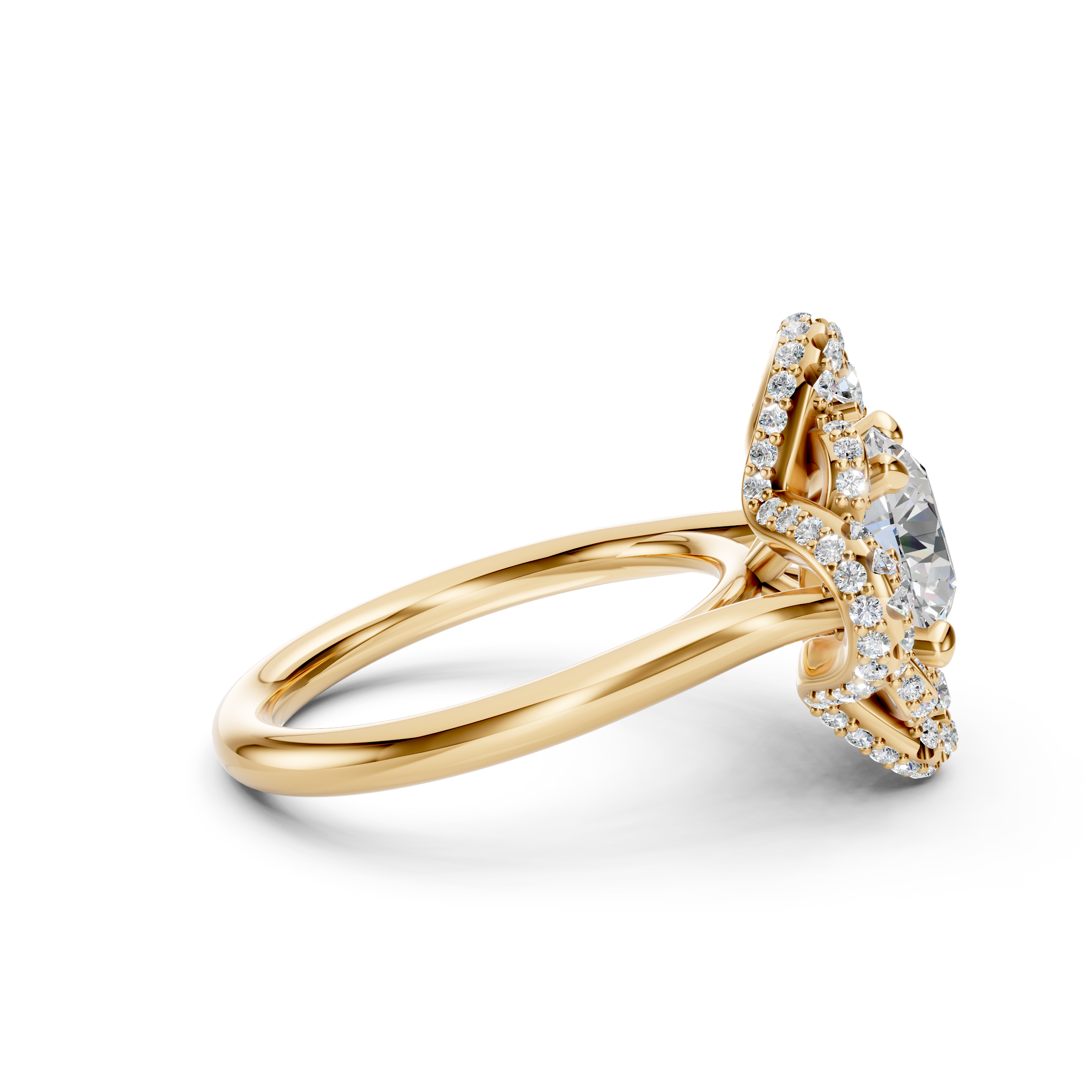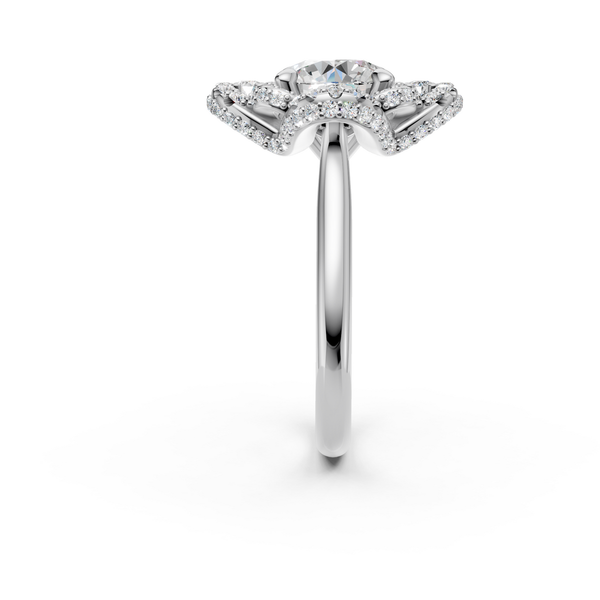 Setting Style: Cathedral with diamond-adorned detailing