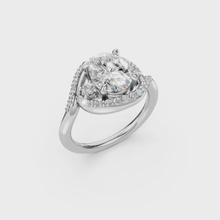This 2 carat oval lab diamond engagement ring is made for someone who wants something different, elevated, and undeniably striking. The elongated oval center stone creates a bold, elegant silhouette, while the unique modern setting adds movement, sparkle, and architectural beauty from every angle.