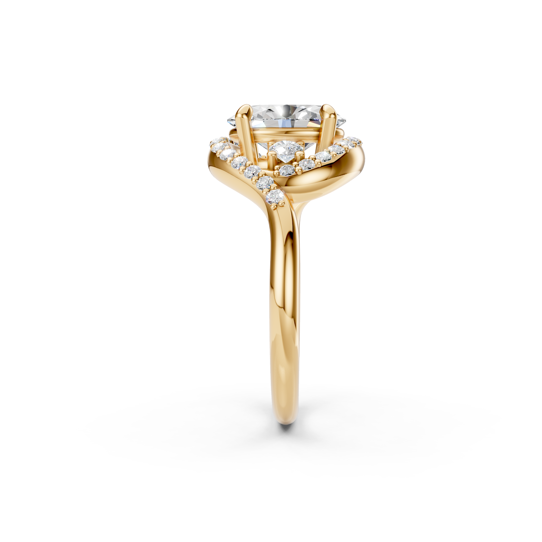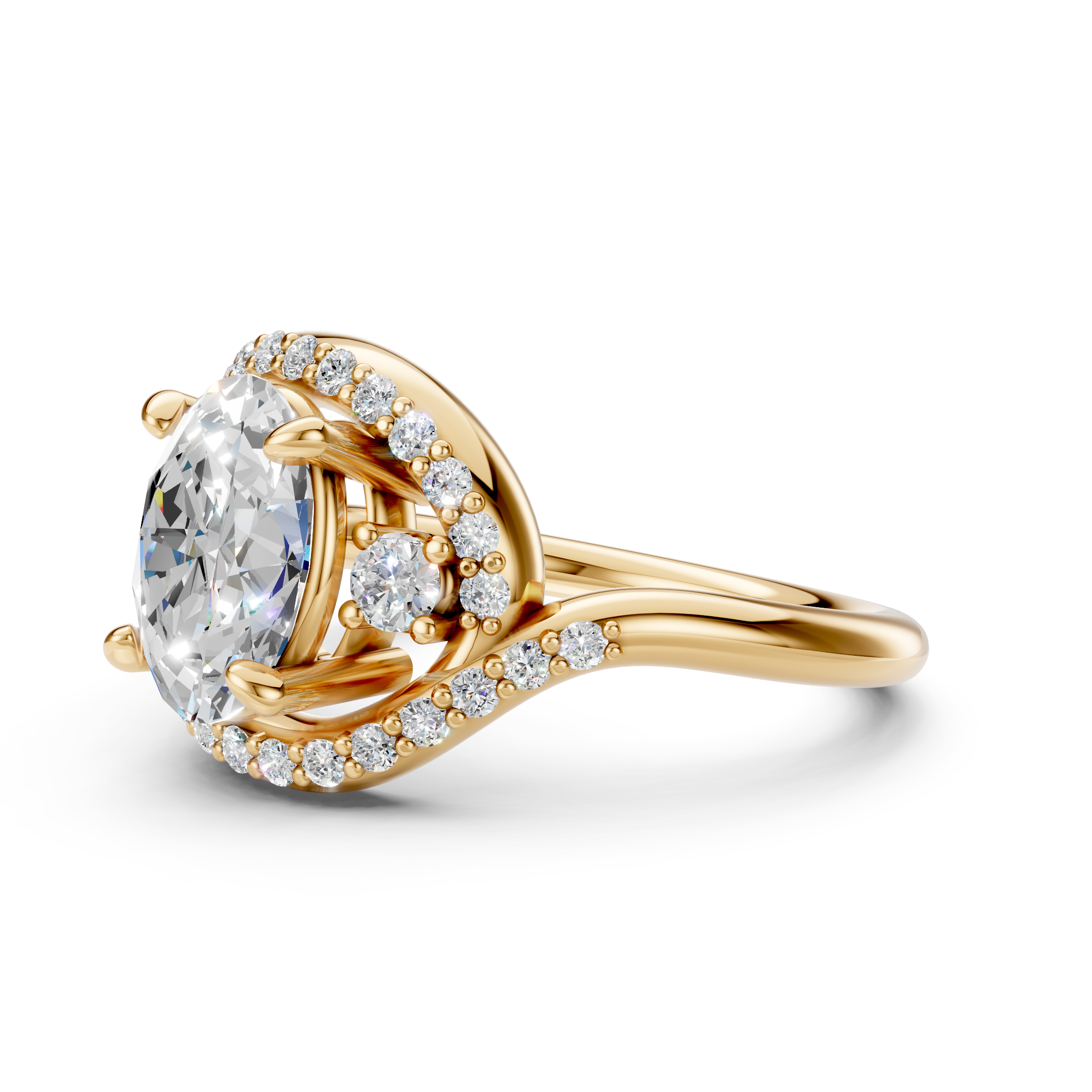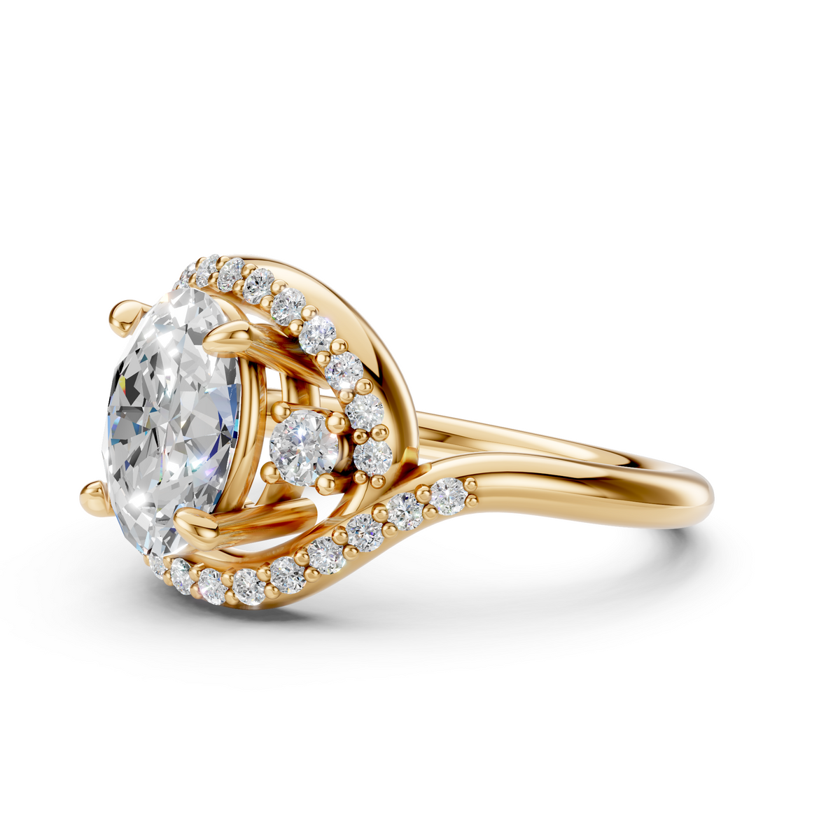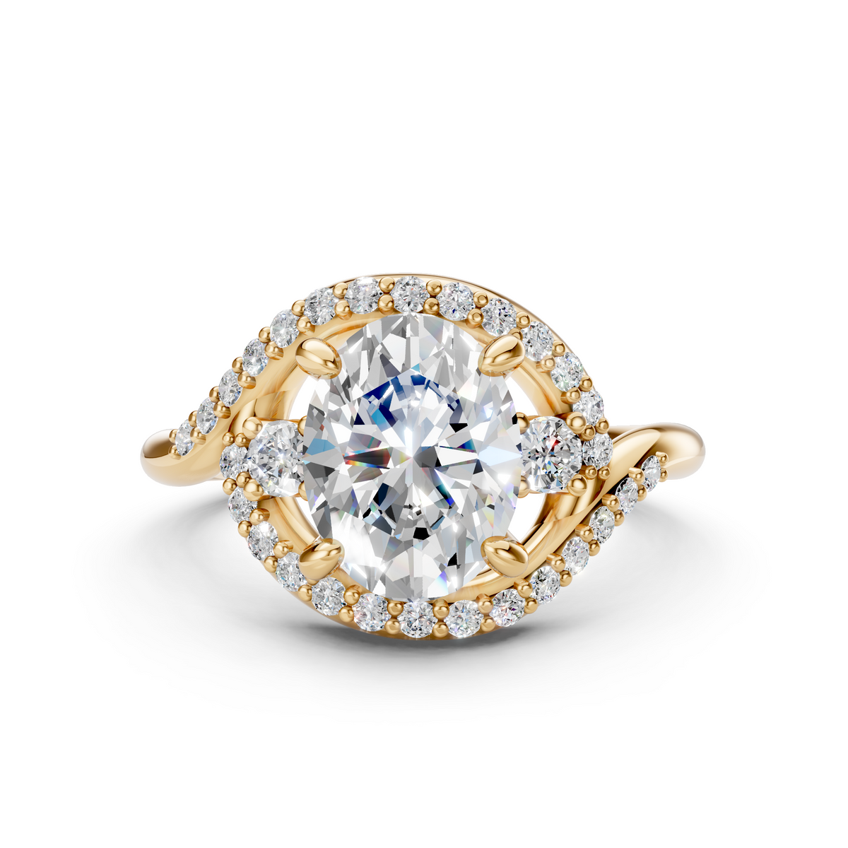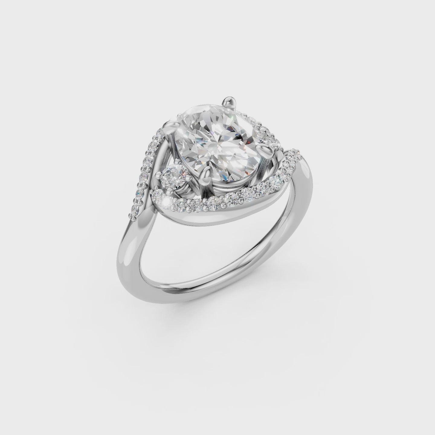 At the heart of the ring is a 2ct IGI-certified oval lab-grown diamond, selected for its exceptional brilliance and clarity. Surrounding accent diamonds flow seamlessly through the setting, enhancing the center stone without overpowering it. Crafted to order in solid gold or platinum, this ring blends modern design with timeless luxury.
