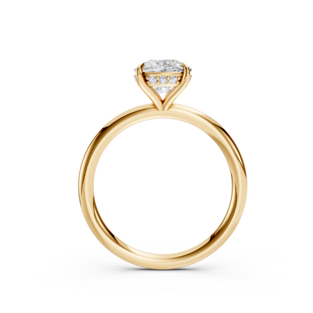 Classic, refined, and designed to shine from every angle, this luxury solitaire engagement ring features a breathtaking 2.50 carat cushion-cut lab-grown diamond set in a delicate hidden halo design.