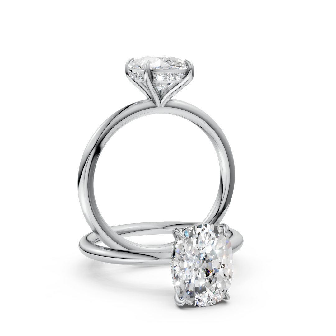 Kayla Cushion Cut Lab Diamond Engagement Ring – Hidden Halo Solitaire