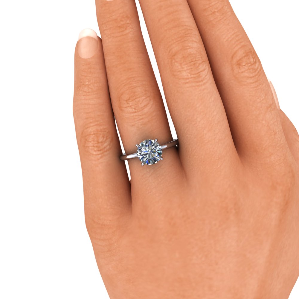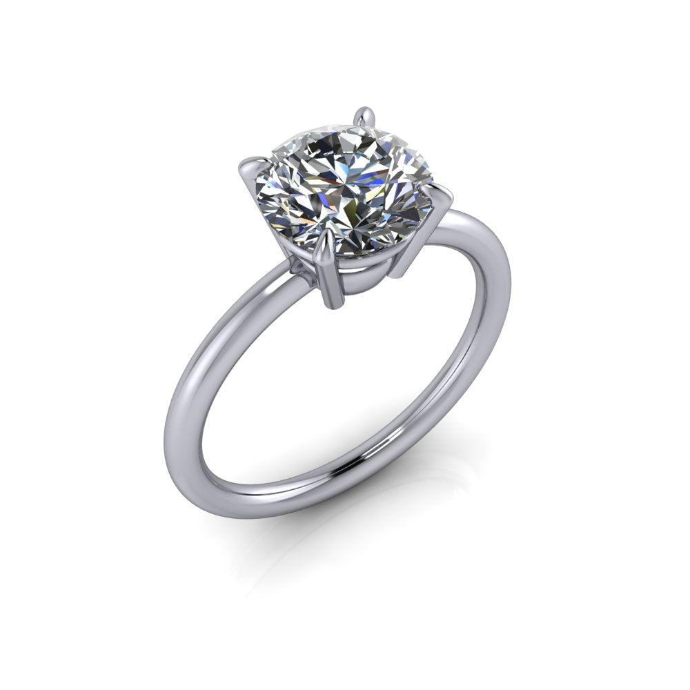 Round lab diamond solitaire engagement ring custom made in silver, gold, or platinum
