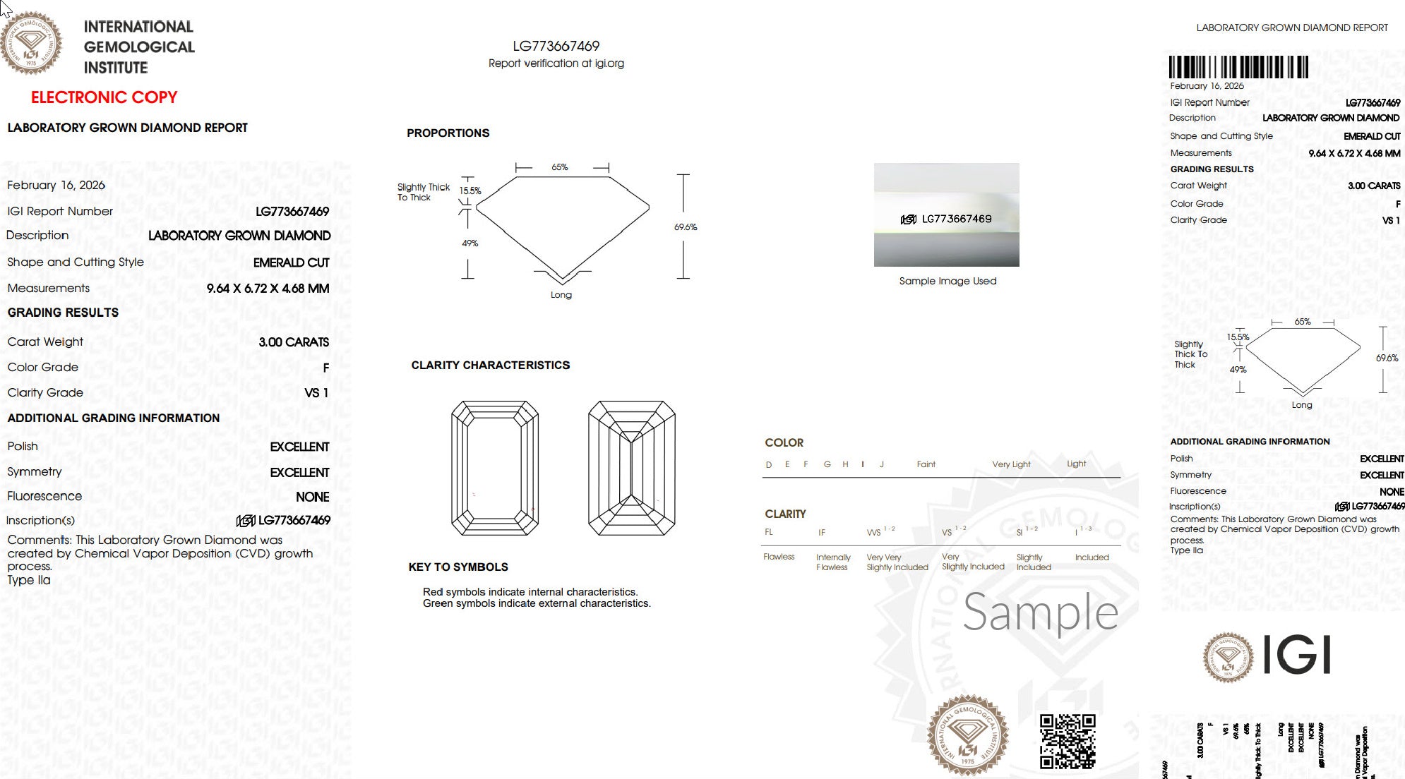Center Stone: IGI Certified Emerald Cut Lab grown diamond, 3.00 ct. F Color, VS Clarity