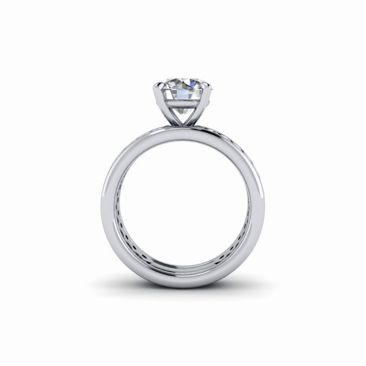 Center Stone: IGI certified 2.00 ct. Round Lab Grown Diamond, Ideal Cut, E Color, VS1 Clarity.