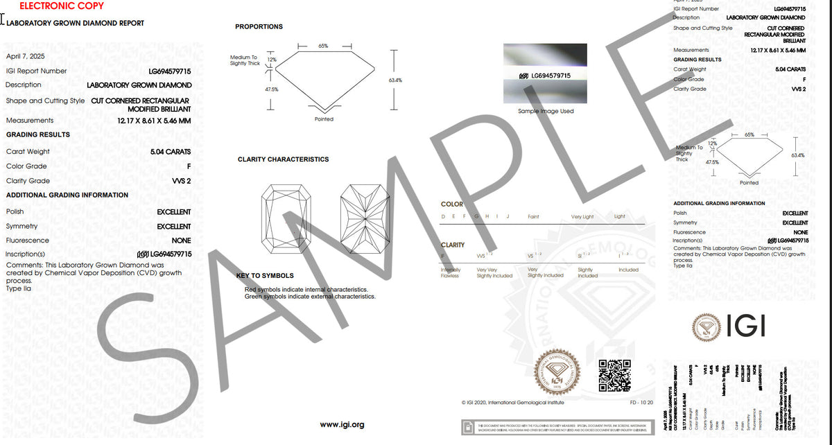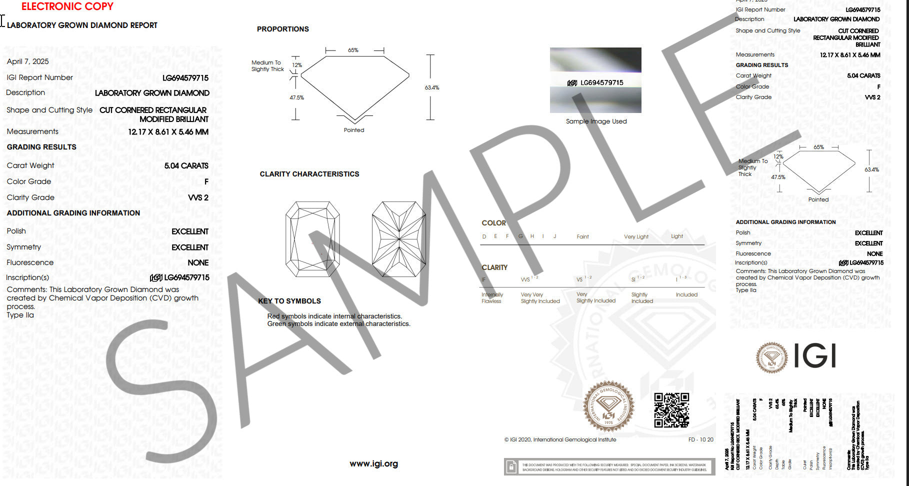 Radiant Cut Lab Grown Diamond Certified 5CT