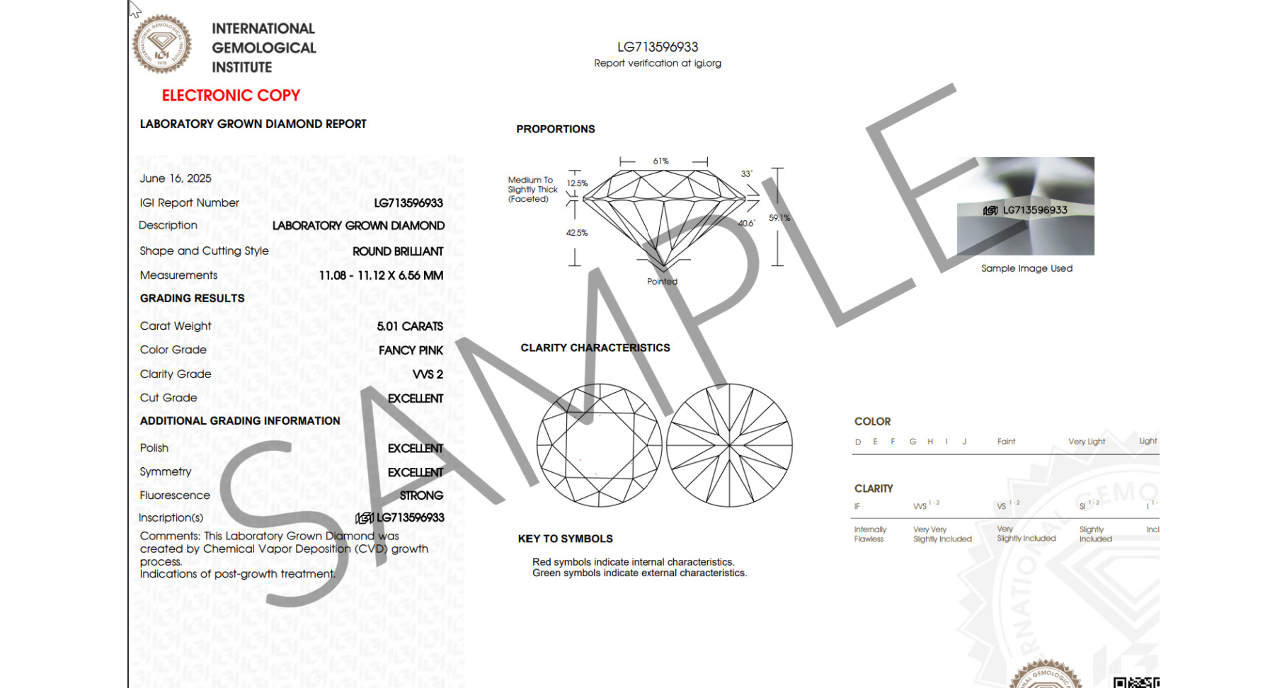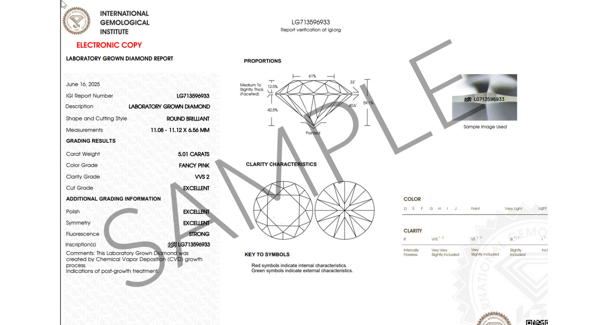 Loose Round Pink Lab Diamond IGI CertifiedÂ