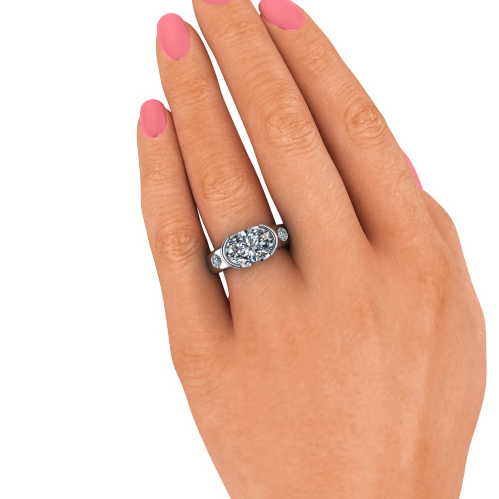 The Solana oval stone lab diamond ring is features a unique bezel setting handcrafted in your choice of gold or platinum.