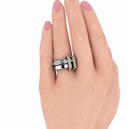 Make a bold statement with the Venus Chunky Connected Rings, expertly crafted in striking solid silver and gold. With a total carat weight of .80 ctw, these rings combine trendsetting design and luxurious sparkle to elevate any outfit.